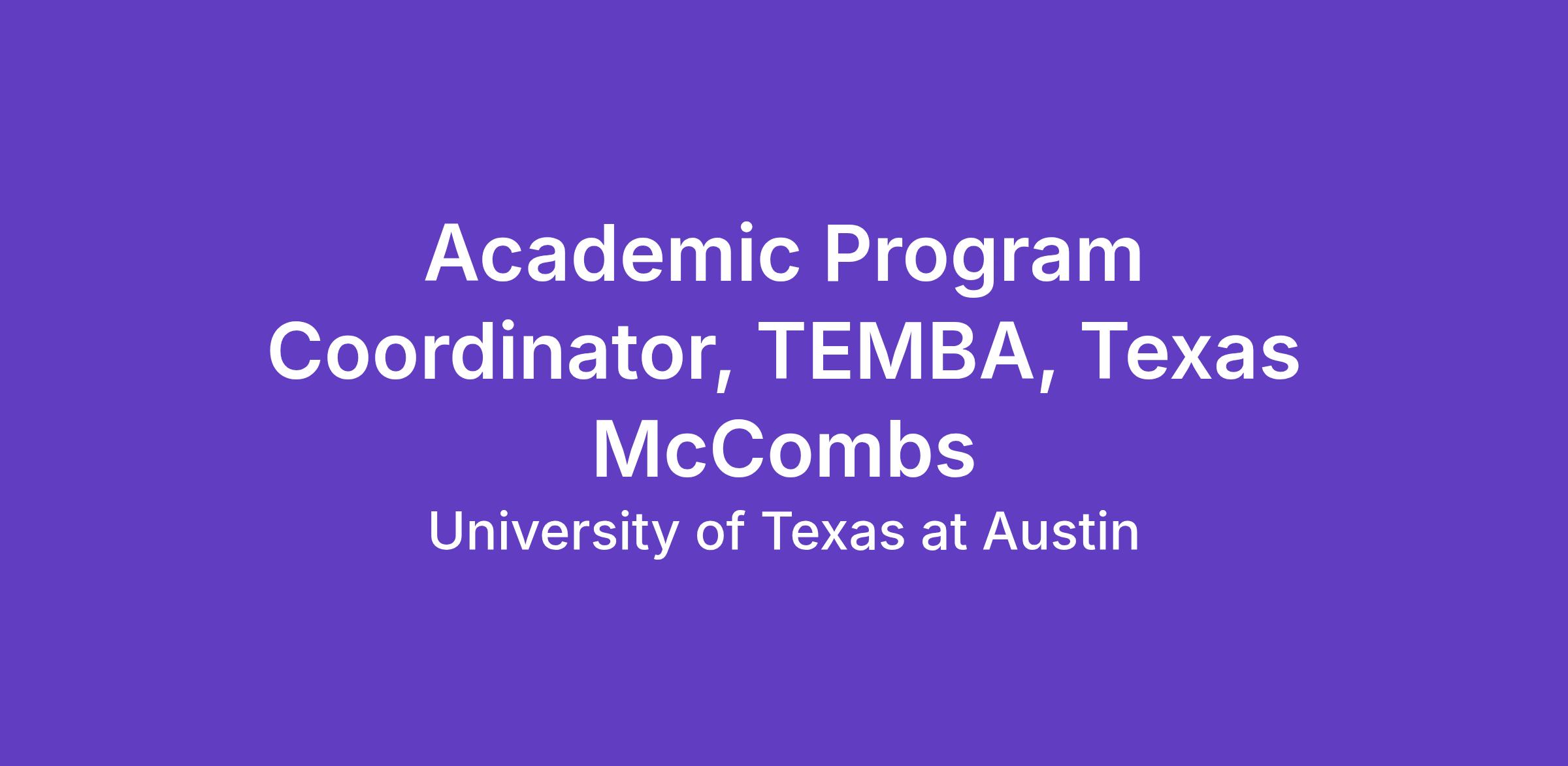 Academic Program Coordinator, TEMBA, Texas McCombs ----