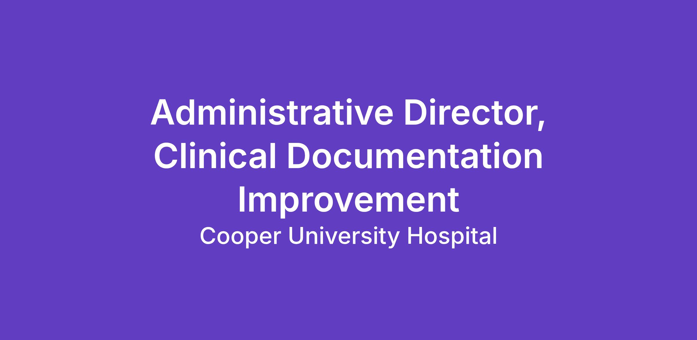 The Clinical Documentation Improvement Program (CDIP) Administrative Director is a key position within the organization. This role provides system wide administrative and operational oversight to the Cooper Health Care CDIP, both for inpatient and professional billing, as well as serving as the point of contact for strategic planning and execution, and operations related to clinical documentation.