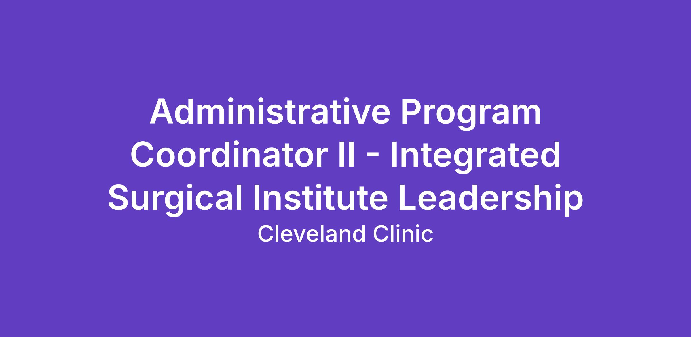Job Title Administrative Program Coordinator II - Integrated Surgical Institute Leadership