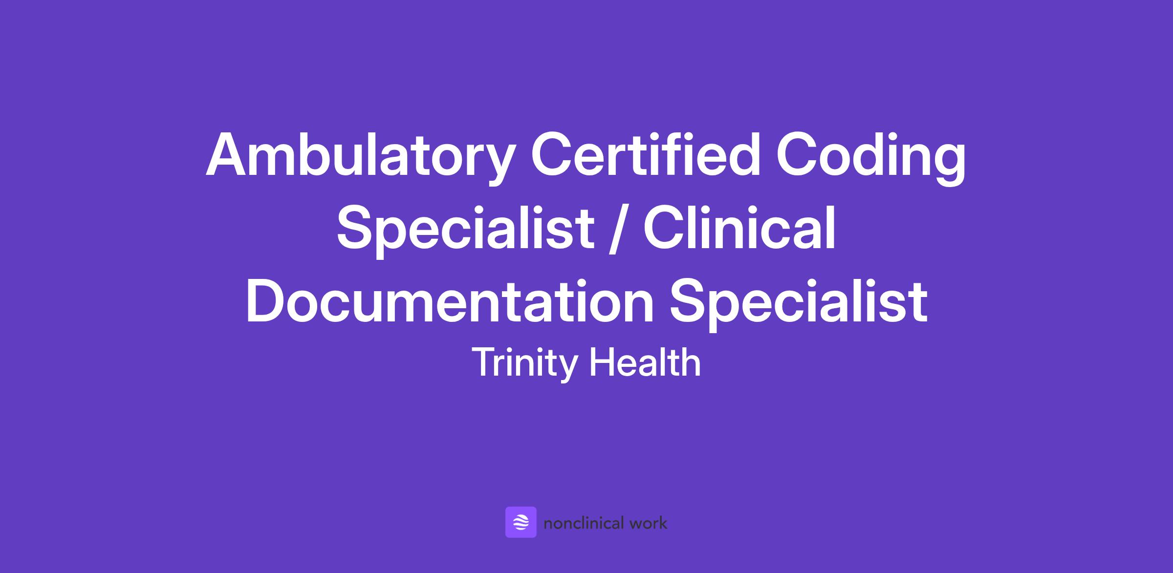 Trinity Health Mid-Atlantic, is looking for a CIN Ambulatory Clinical Documentation Specialist to join our team!