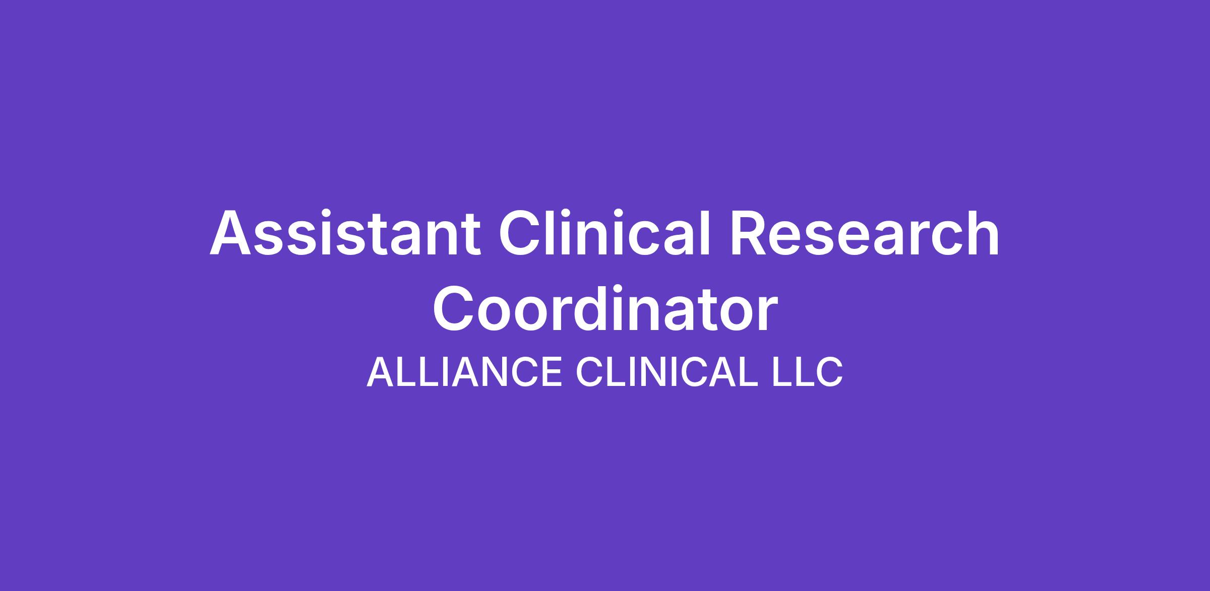 The Assistant Clinical Research Coordinator (ACRC) supports the planning, coordination, and execution of clinical research studies within a healthcare setting. This role ensures clinical trials are conducted in compliance with study protocols, regulatory requirements, and institutional policies while protecting participant safety and data integrity. Working closely with Principal Investigators (PIs), research staff, and study participants, the ACRC assists with participant screening, data collection, and the coordination of study activities to ensure accuracy, efficiency, and high-quality research outcomes.