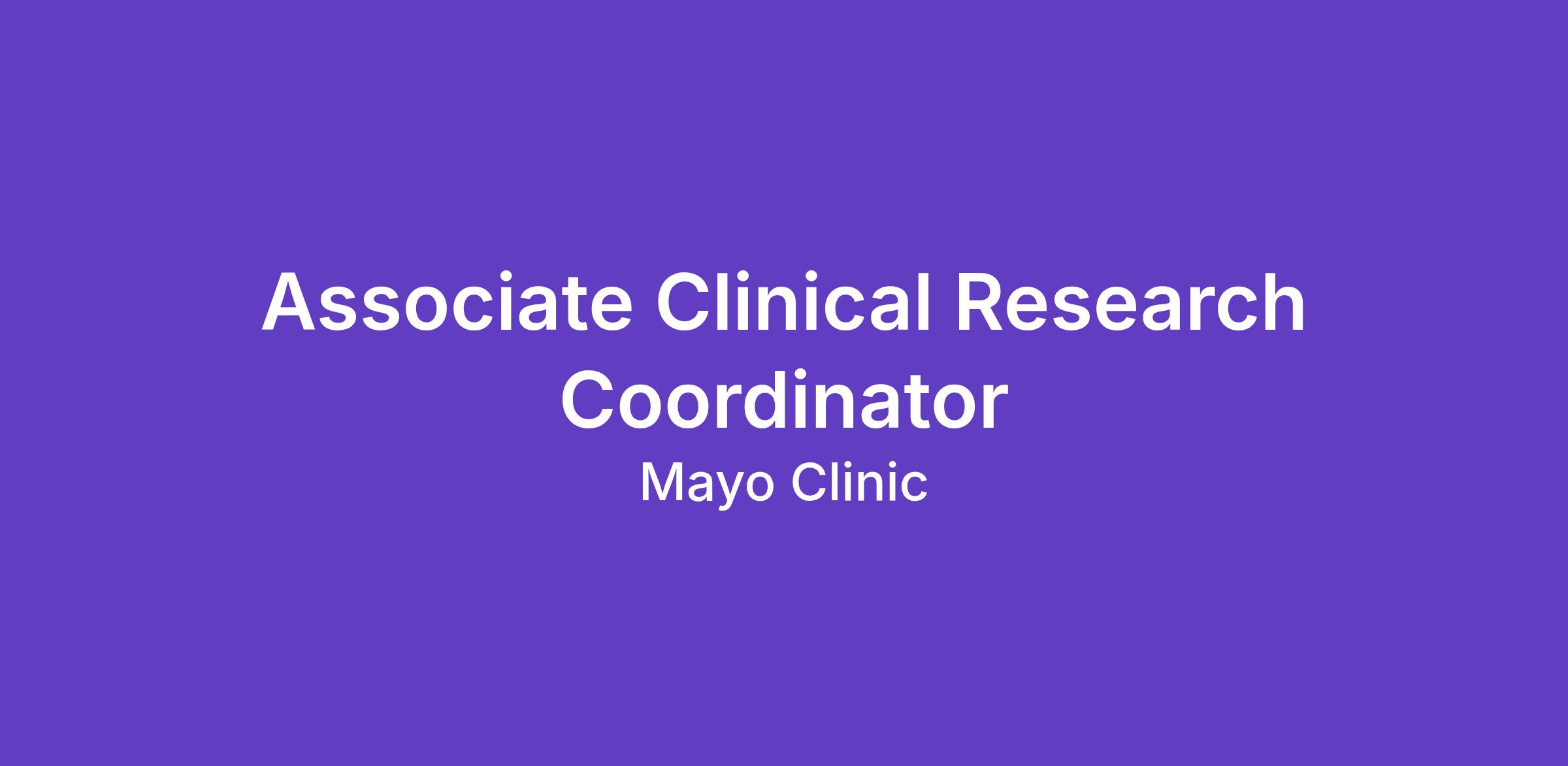 career as an Associate Clinical Research Coordinator. As an Associate Clinical