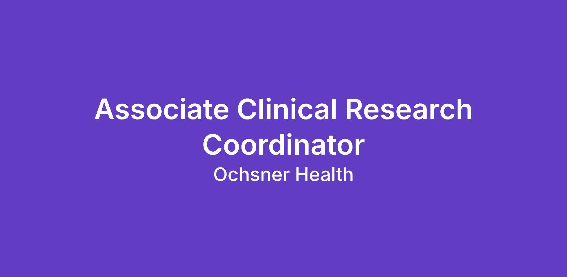 Ochsner is an equal opportunity employer. All qualified applicants will receive consideration for employment without regard to any legally protected class, including protected veterans and individuals with disabilities.
