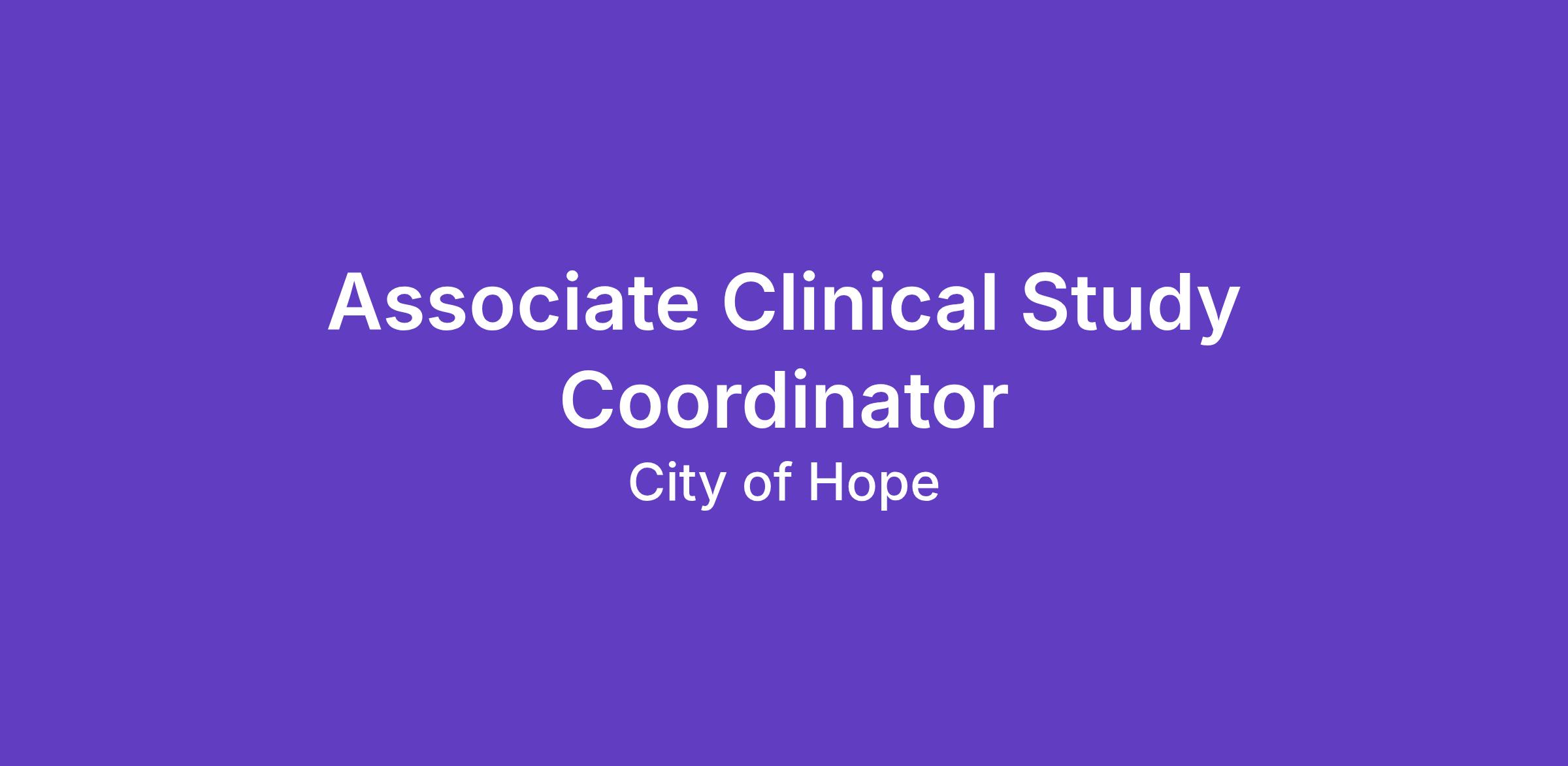 Associate Clinical Study Coordinator About City of Hope ,
