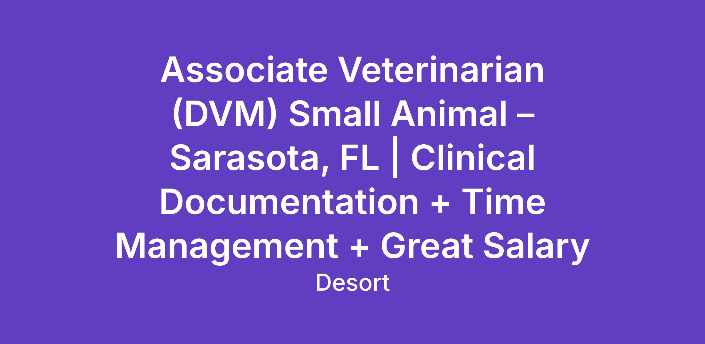 Associate Veterinarian (DVM) Small Animal – Sarasota, FL