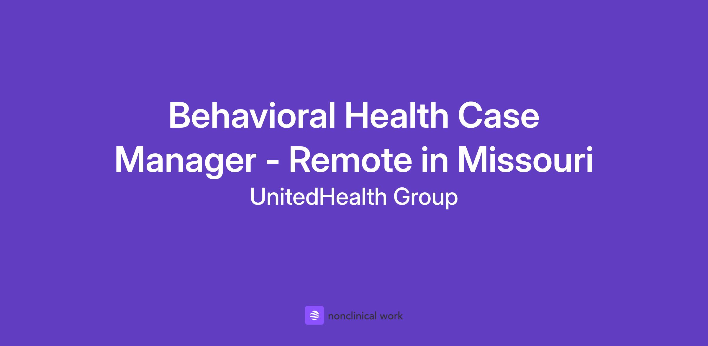 The Optum family of businesses, is seeking a Behavioral Health Case Manager to join our team in Missouri. As a member of the Optum Behavioral Care team, you’ll be an integral part of our vision to make healthcare better for everyone.