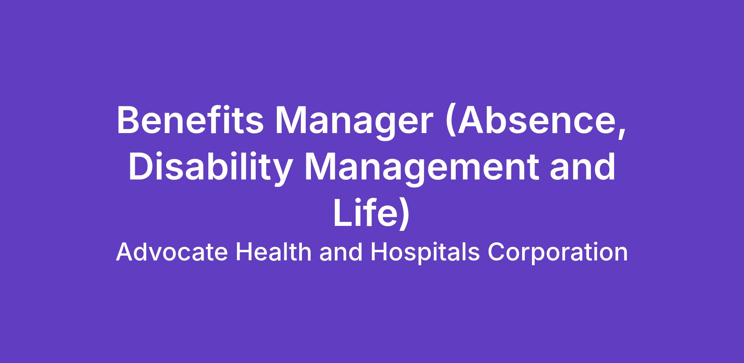 $51.05 - $76.60Manager position with focus on Absence, Disability and Life benefits for Advocate Health Teammates.
