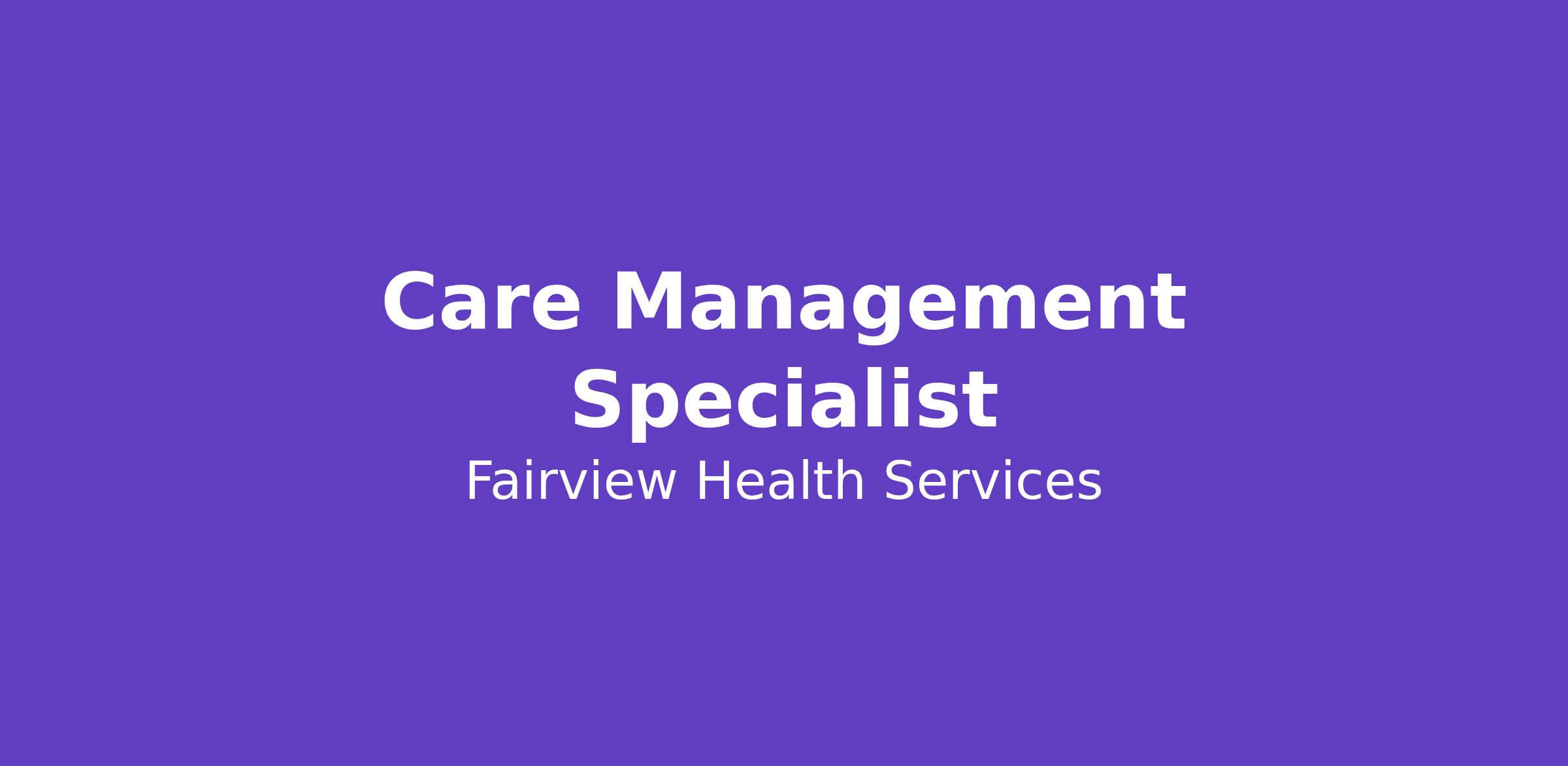 The Care Management Specialist is responsible for establishing and maintaining relationships with providers, patients, families, and vendors of Fairview Partners, as well as serving as the liaison between Fairview Partners and the health plans for all community enrolled members. The Care Management Specialist directly supports Fairview Partners Care Coordinators.