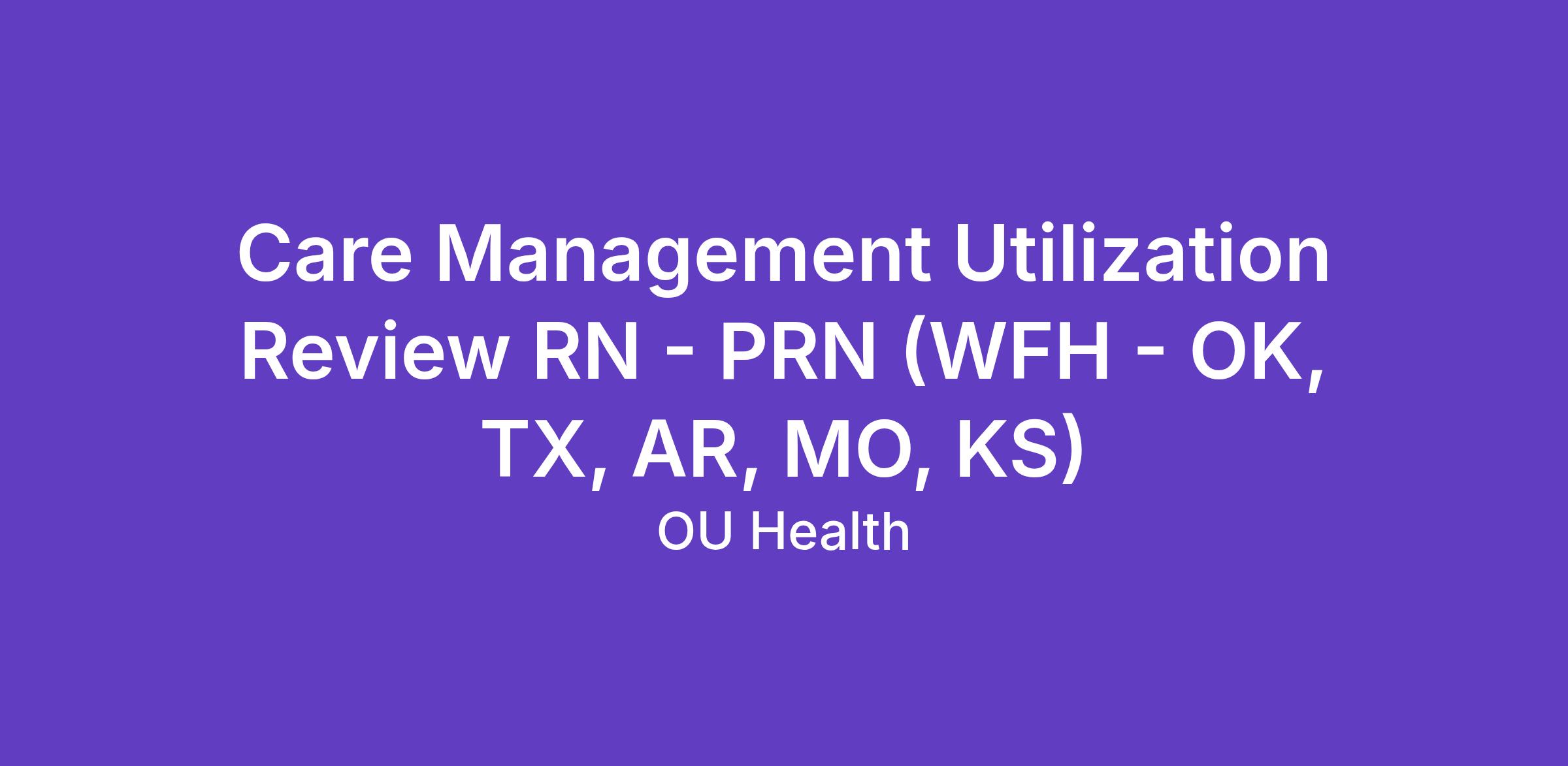 Please only apply if you live and work full-time in one of the states listed above or plan to relocate to one of these states before starting your employment with OU Health. State locations and specifics are subject to change as our hiring requirements shift.