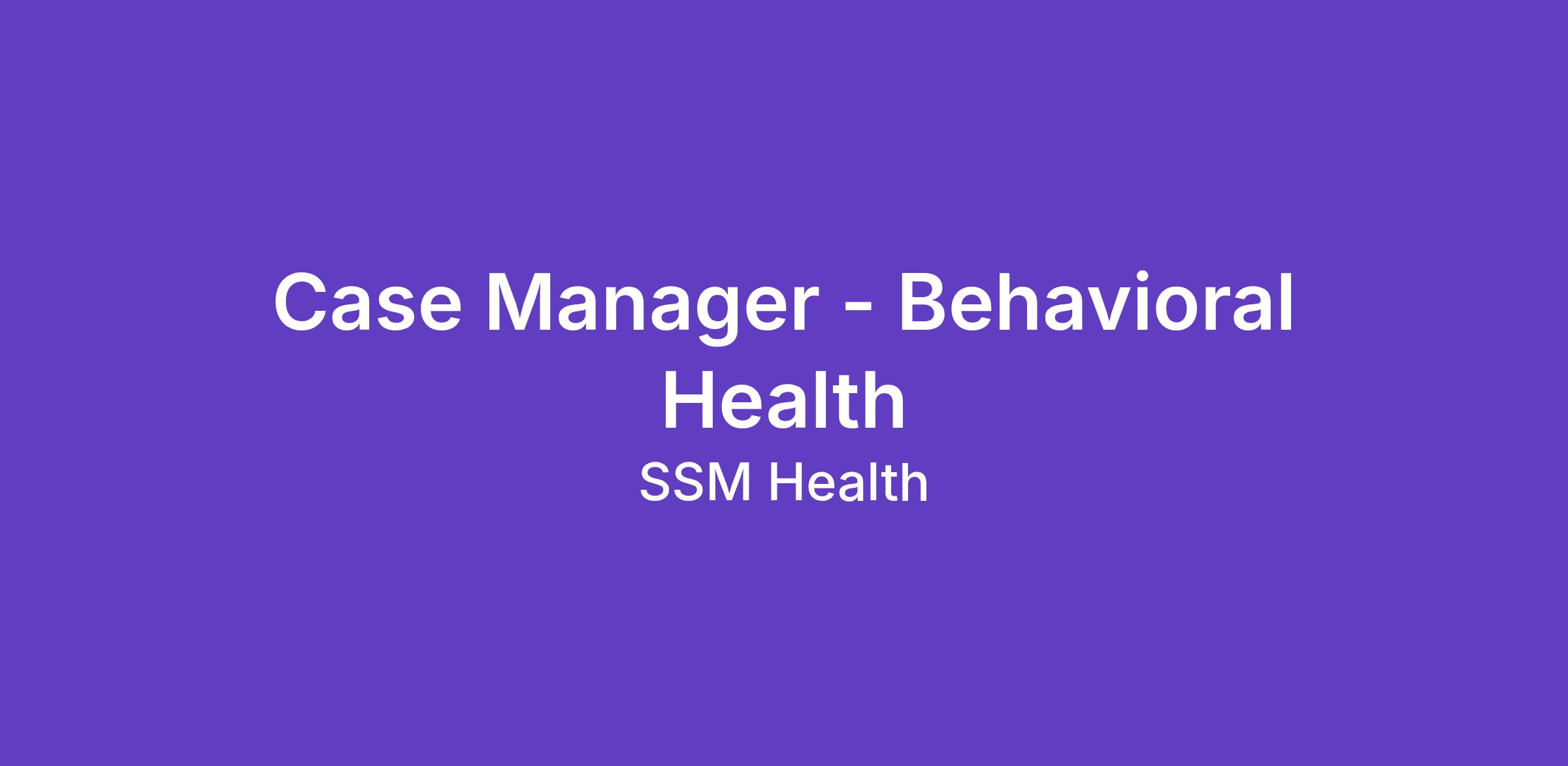 Our mission and values put the patient first and helps you to feel valued while respecting teamwork and collaboration. Our Case Management roles are an integral piece in our care team and we see it as a partnership. This position is scheduled to work 24 hours/week. At SSM Health, we know the healing power of presence begins with compassionate people like you.