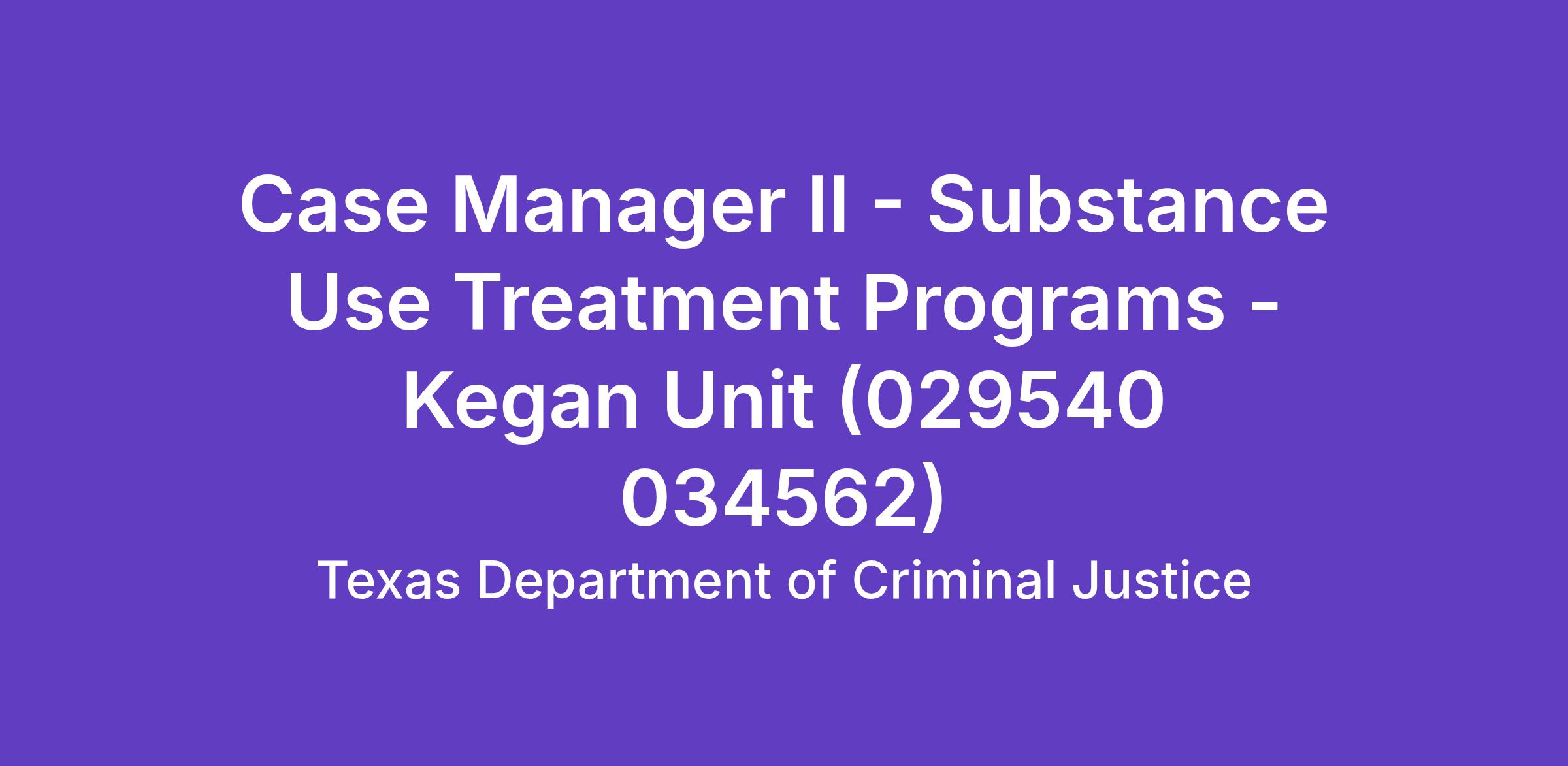 Case Manager II - Substance Use Treatment Programs - Kegan Unit (029540 034562)