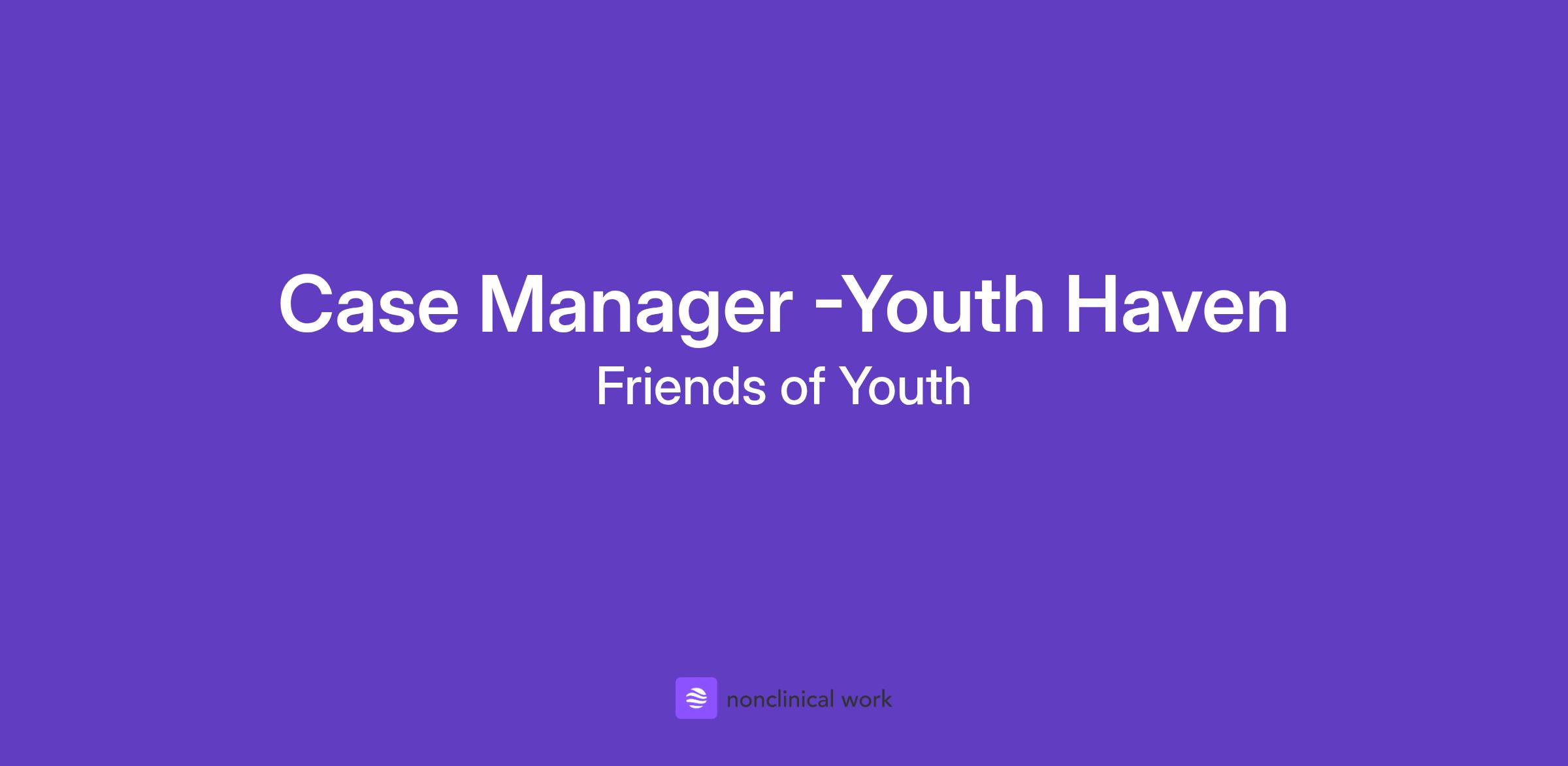 The Case Manager of Youth Haven provides intensive case management and supervision for a small case load of four to six youth who are receiving shelter services. They partner with youth utilizing a trauma-informed approach to work towards their self-identified goals, reduce barriers to staying housed, and transition to permanent housing.