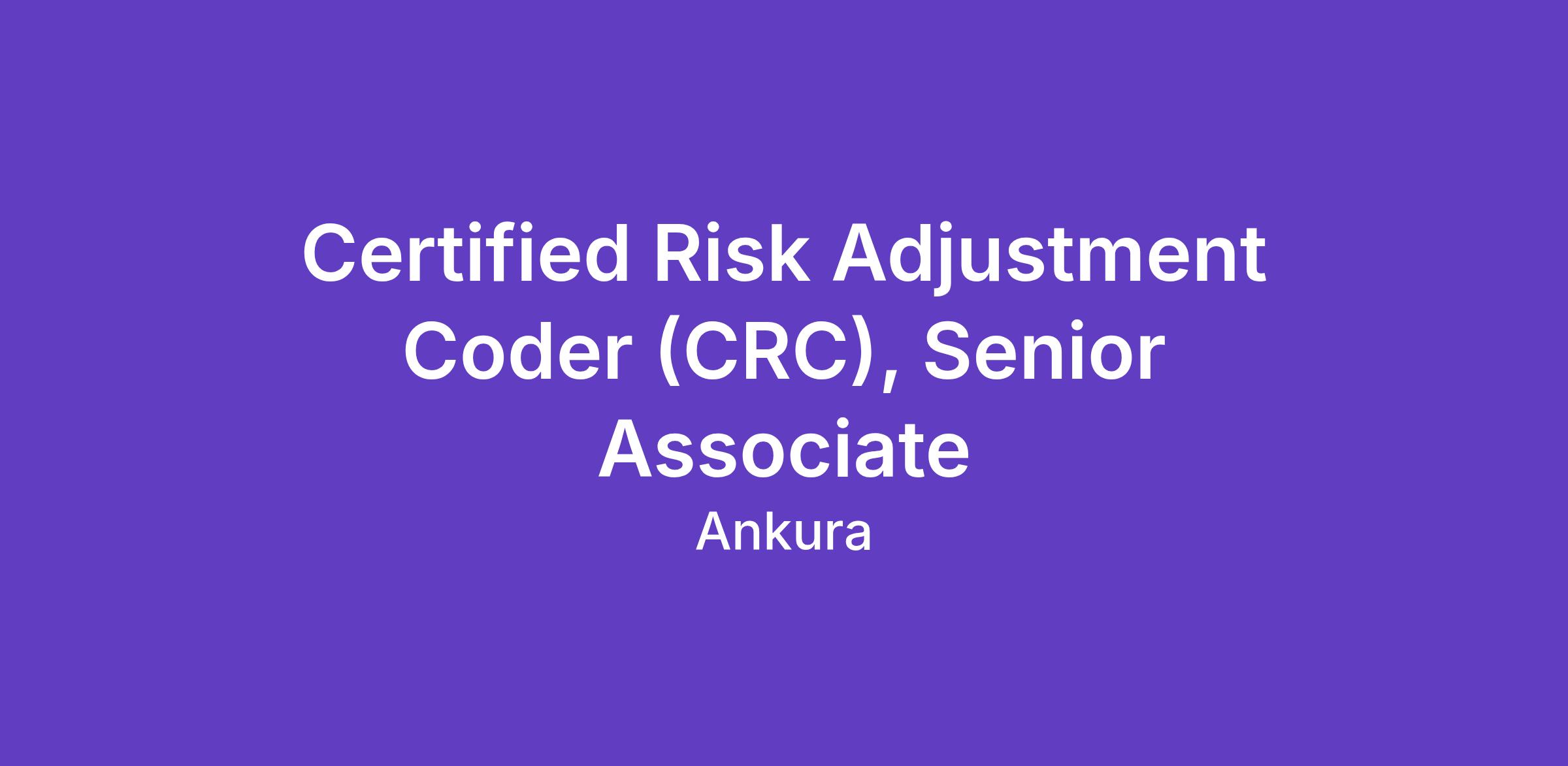 Certified in Risk Adjustment Coding (CRC) with at least five (5) recent years of experience in HCC/Risk Adjustment and/or RADV Audit Methodology
