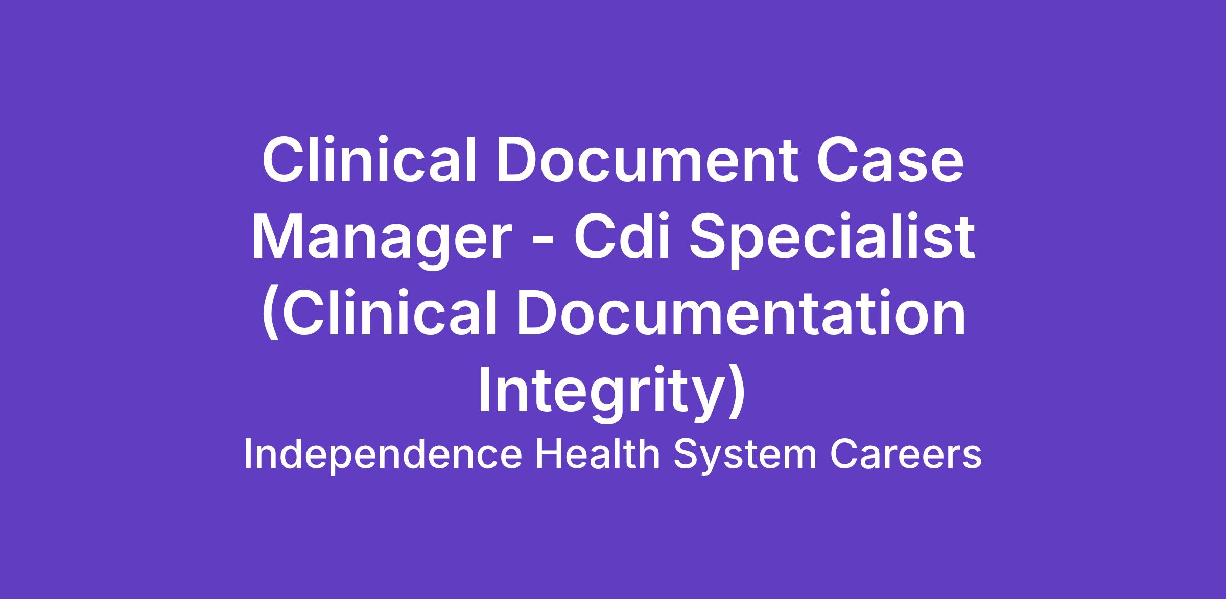 The Clinical Documentation Case Managers are experienced nurses with clinical skills and knowledge in the application of documentation compliance necessary to support patient severity and corresponding organizational reimbursement. There is an expectation of a high level of understanding of the DRG reimbursement process and ICD-10 CM coding guidelines. The position is responsible for the improvement in overall quality, accuracy and completeness of clinical documentation, and assures all documentation describes each patientβs clinical condition as accurately as possible and supports the level of service provided. The incumbent assists to facilitate the required level of detail in clinical documentation by educating and communicating extensively with the Medical Staff, other members of the health care team and Medical Records coding staff and demonstrates improvement in metrics such as CMI, Core Measure compliance, volume of Medical Record coding queries, etc.