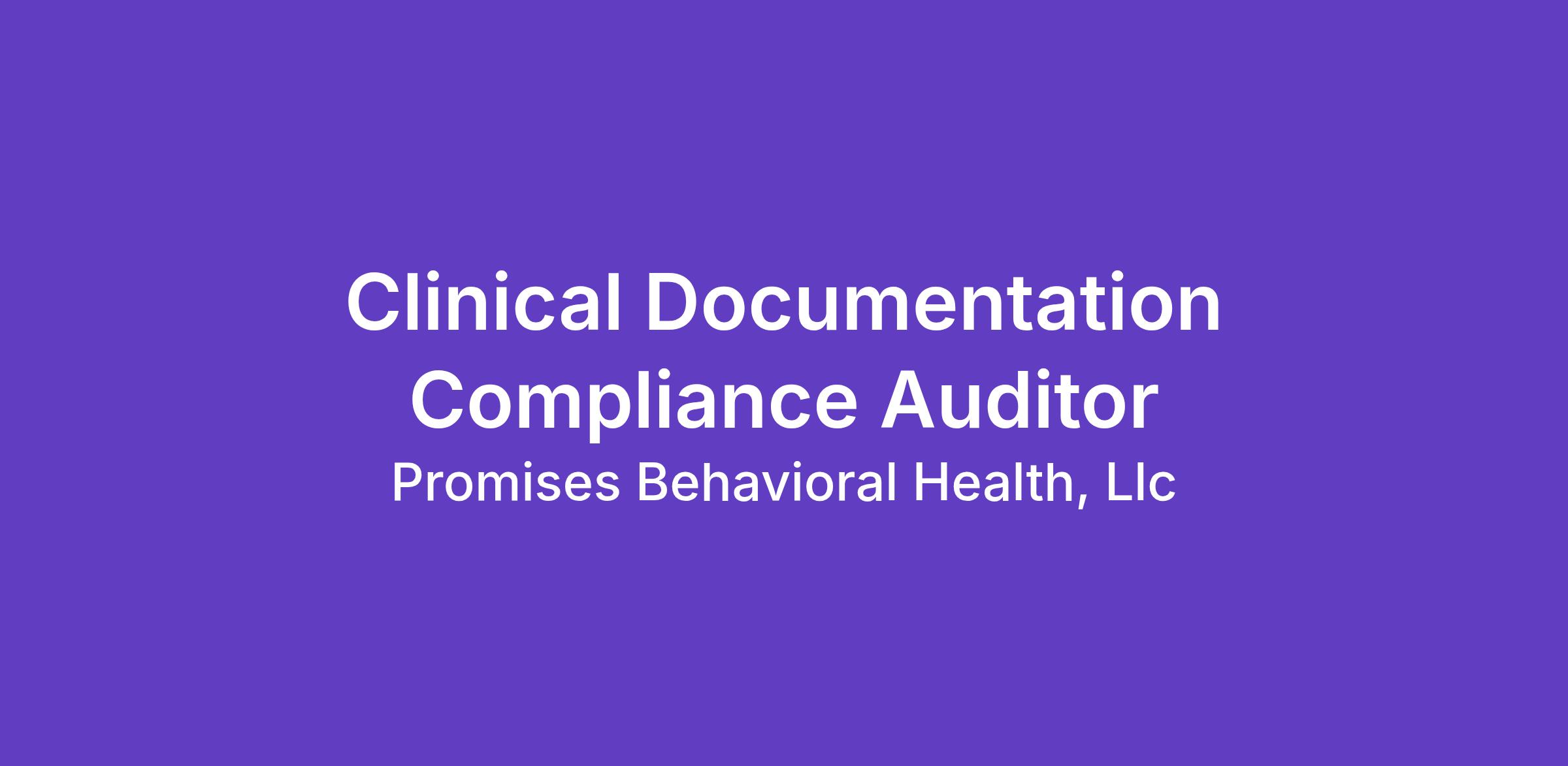 The Clinical Documentation Compliance Auditor manages comprehensive medical record documentation preparedness for demonstrating compliance with regulatory, accreditation, and payor requirements; produces and maintains cumulative documentation compliance program activity records and analytical reports; tracks and trends documentation compliance program activities; ensures immediate availability of program integrity component documentation reviews; produces and manages quick reference guides to promote organizational awareness of documentation requirements; provides recommendations for improvement based on identified issues; and supports organizational accountability by producing and managing timelines to ensure issue closure and response deadlines are met.