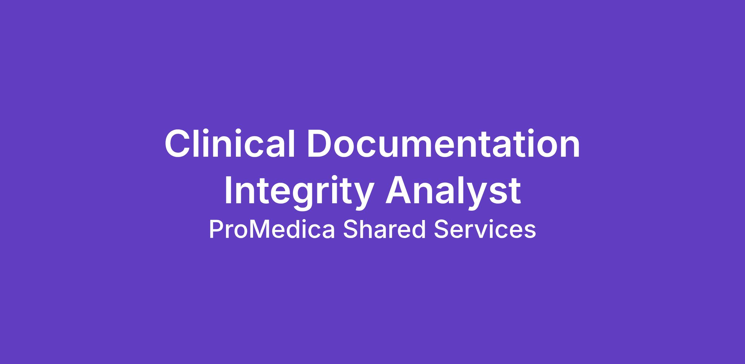 As the Clinical Documentation Integrity Analyst, you are a resource for internal customers and clinical staff for ProMedica’s Clinical Documentation Integrity program.
