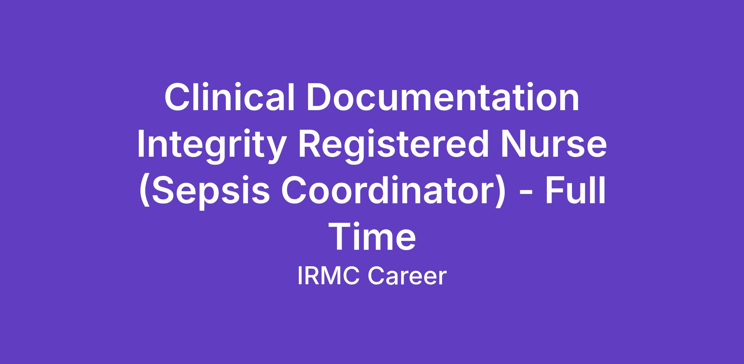 - Formal training or coursework in: Clinical Documentation Integrity; Sepsis management / sepsis bundle compliance; Quality improvement / performance improvement; High Reliability Organization (HRO) principles desirable
