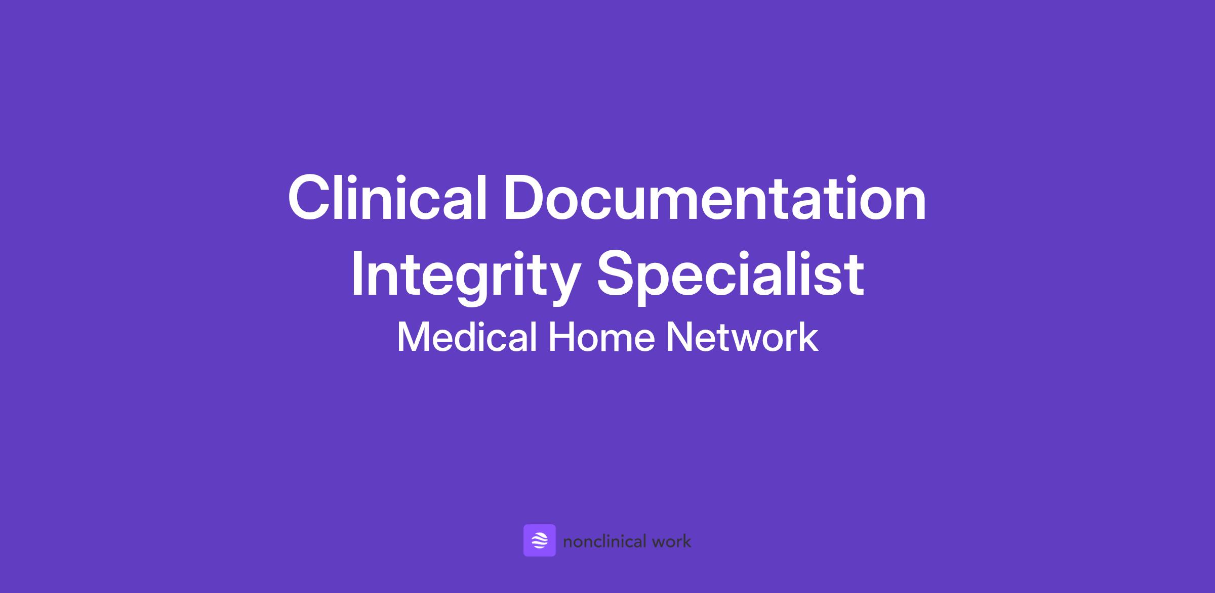 Are you ready to join a passionate community of people who are changing how health care is delivered? A place where you will find a career you love while truly making a difference building healthier communities. If this sounds like you, we would love to have you apply as Clinical Documentation Integrity Specialist, with Medical Home Network!