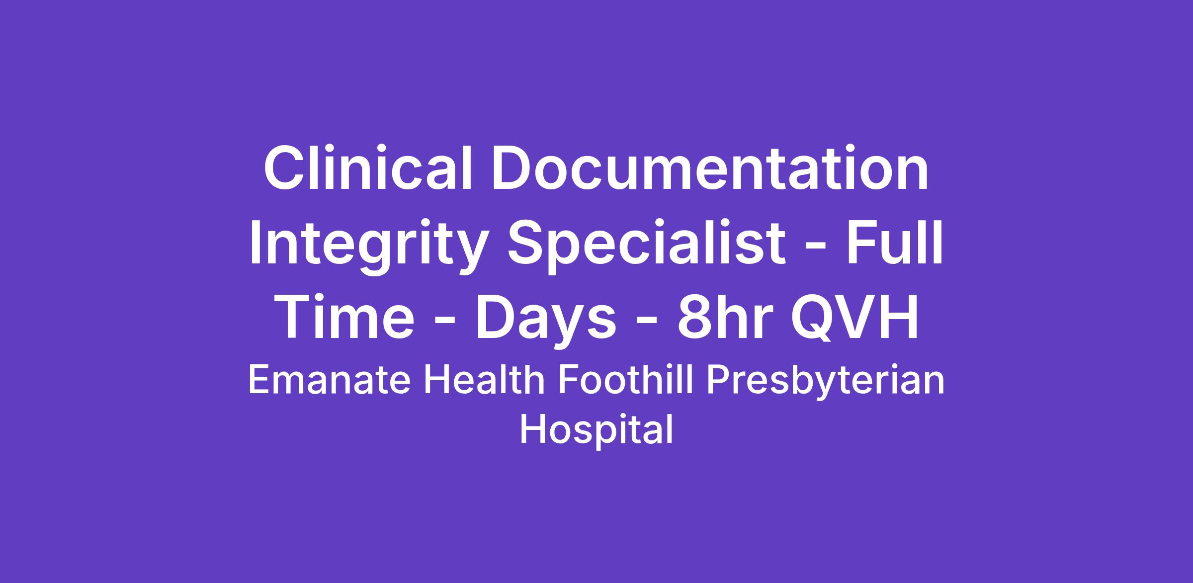 ACDIS Certified Clinical Documentation Specialist (CCDS) or AHIMA Certified Documentation Integrity Practitioner (CDIP) required within 1 year of hire/transfer.