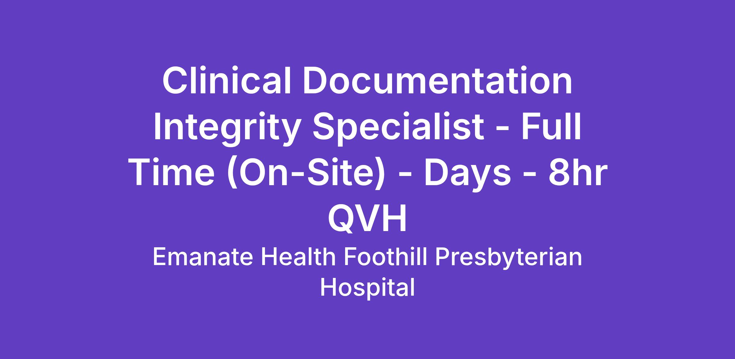 ACDIS Certified Clinical Documentation Specialist (CCDS) or AHIMA Certified Documentation Integrity Practitioner (CDIP) required within 1 year of hire/transfer.