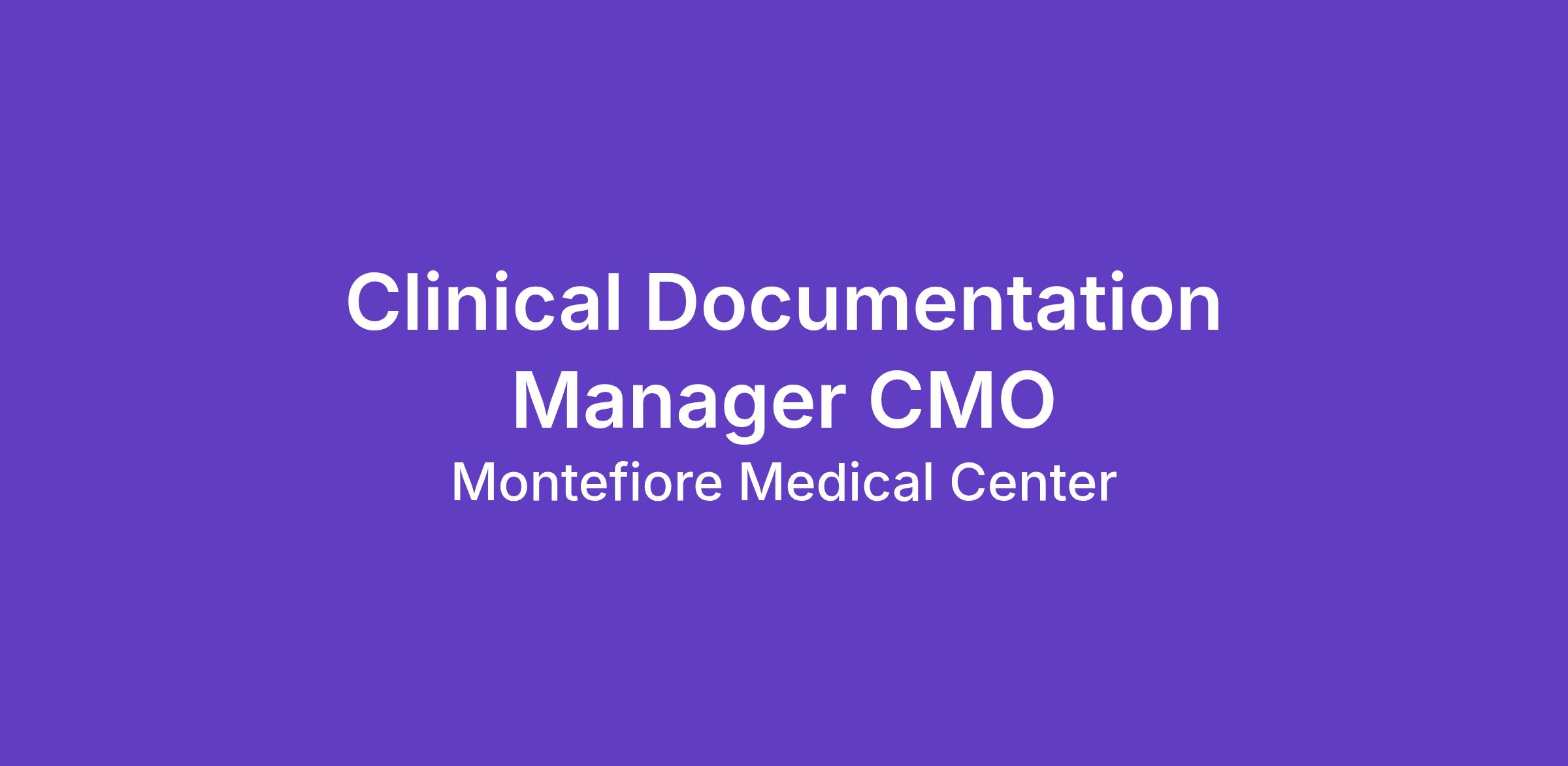 *This position also plans, develops, implements, evaluates and updates clinical documentation education programs and ongoing development of the Montefiore Medical Center's Clinical Documentation Integrity program.