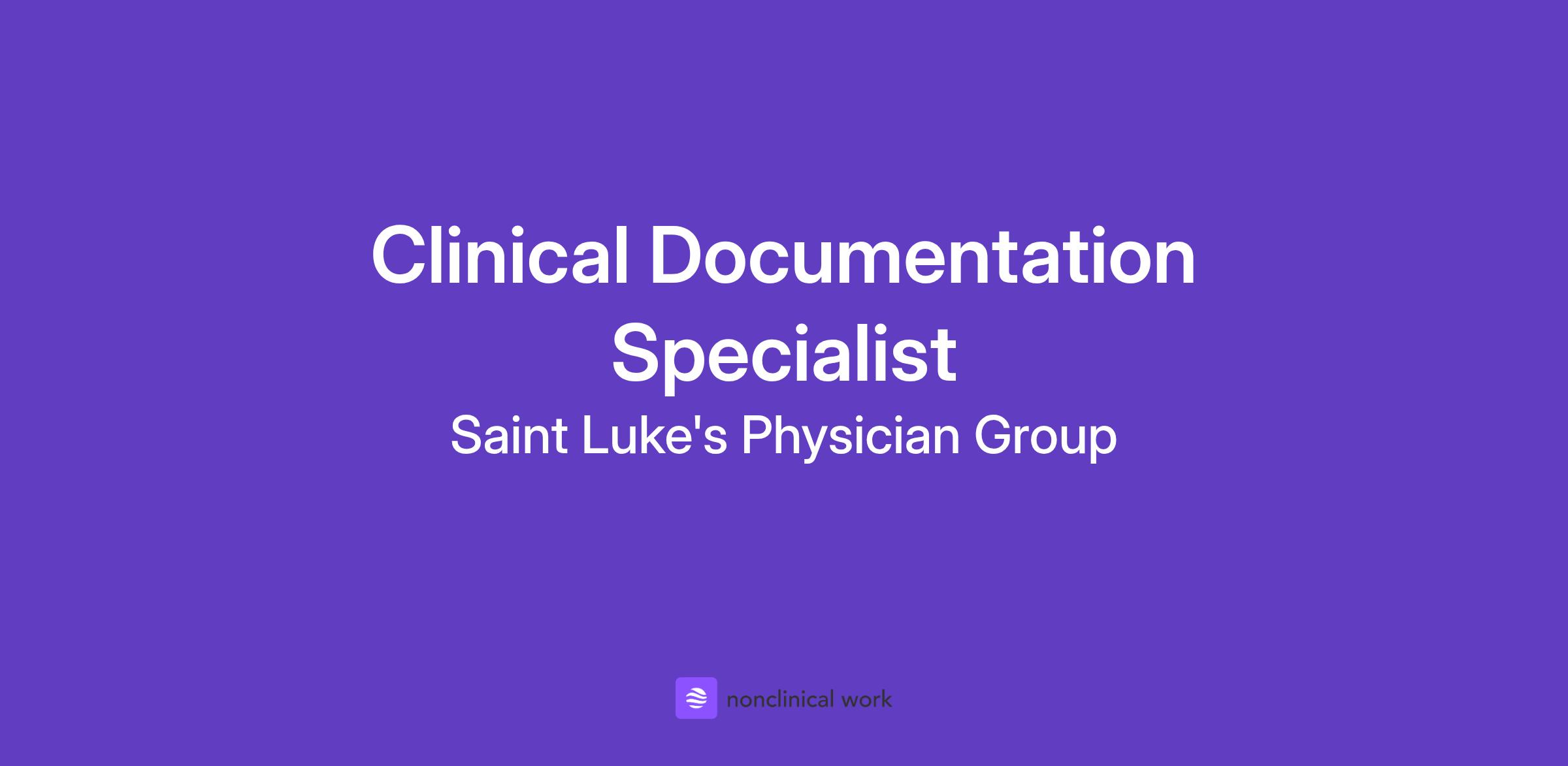 Saint Luke's is looking for a Clinical Documentation Specialist to review medical record documentation to ensure appropriate representation of severity of illness, complications, comorbidities, and clinical support. This person will educate clinical providers on accurate and compliant medical record documentation. A bachelor's Degree is required or 4 years minimum of Inpatient Coding or CDI work experience, in lieu of Bachelor’s Degree. This is a remote position. Our priority is patient care in that we interact with patients daily and have the opportunity to bring something positive to their day to ensure Saint Luke’s is “The Best Place To Get Care, The Best Place To Give Care.”
