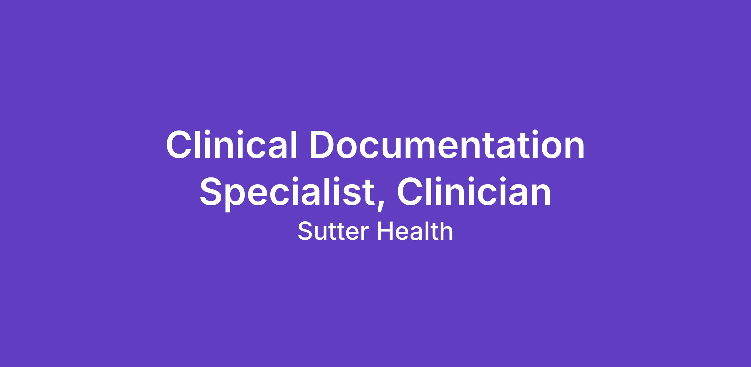 Clinical Documentation Specialist, Clinician