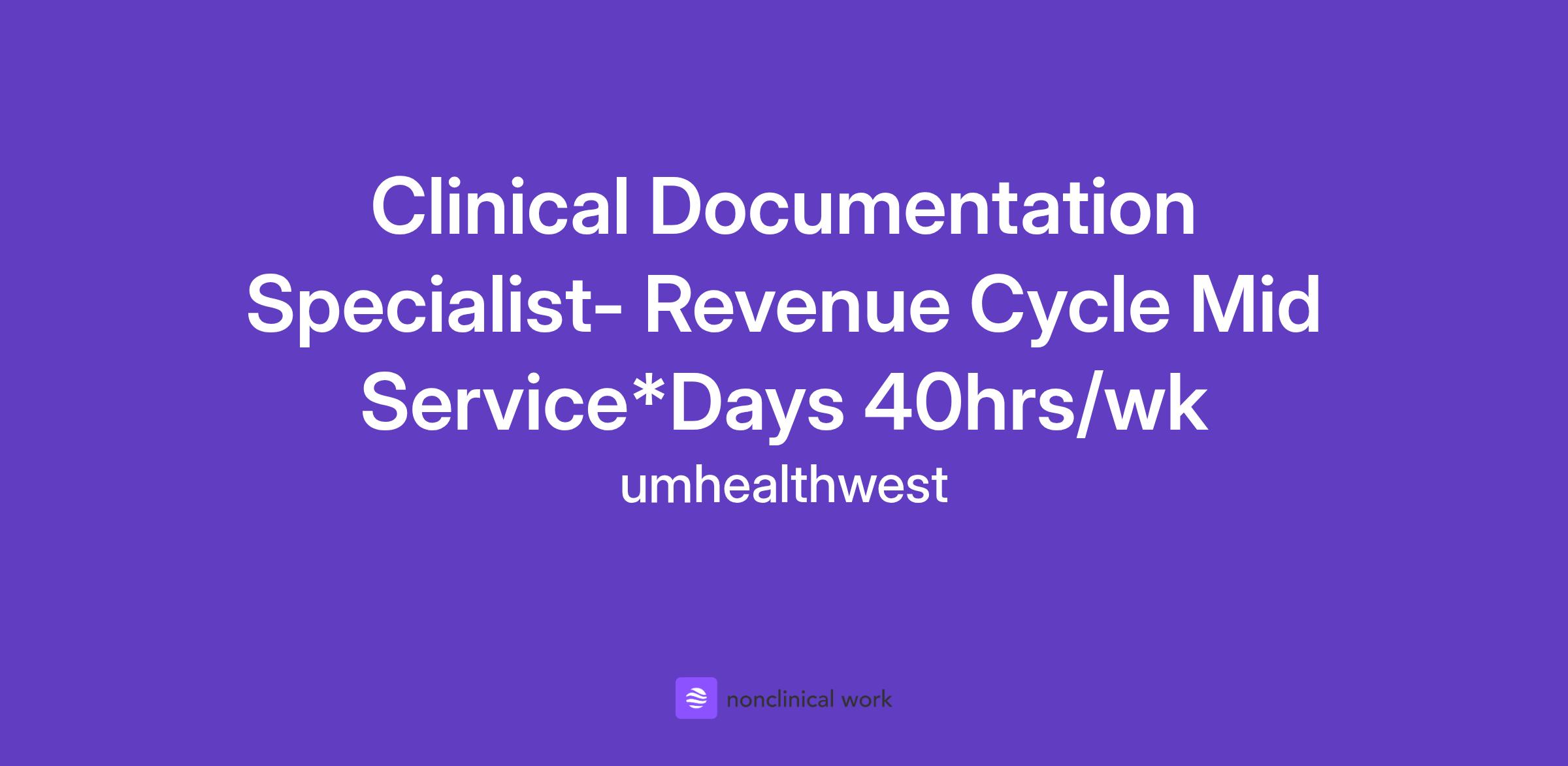 Clinical Documentation Specialist- Revenue Cycle Mid Service*Days 40hrs/wk