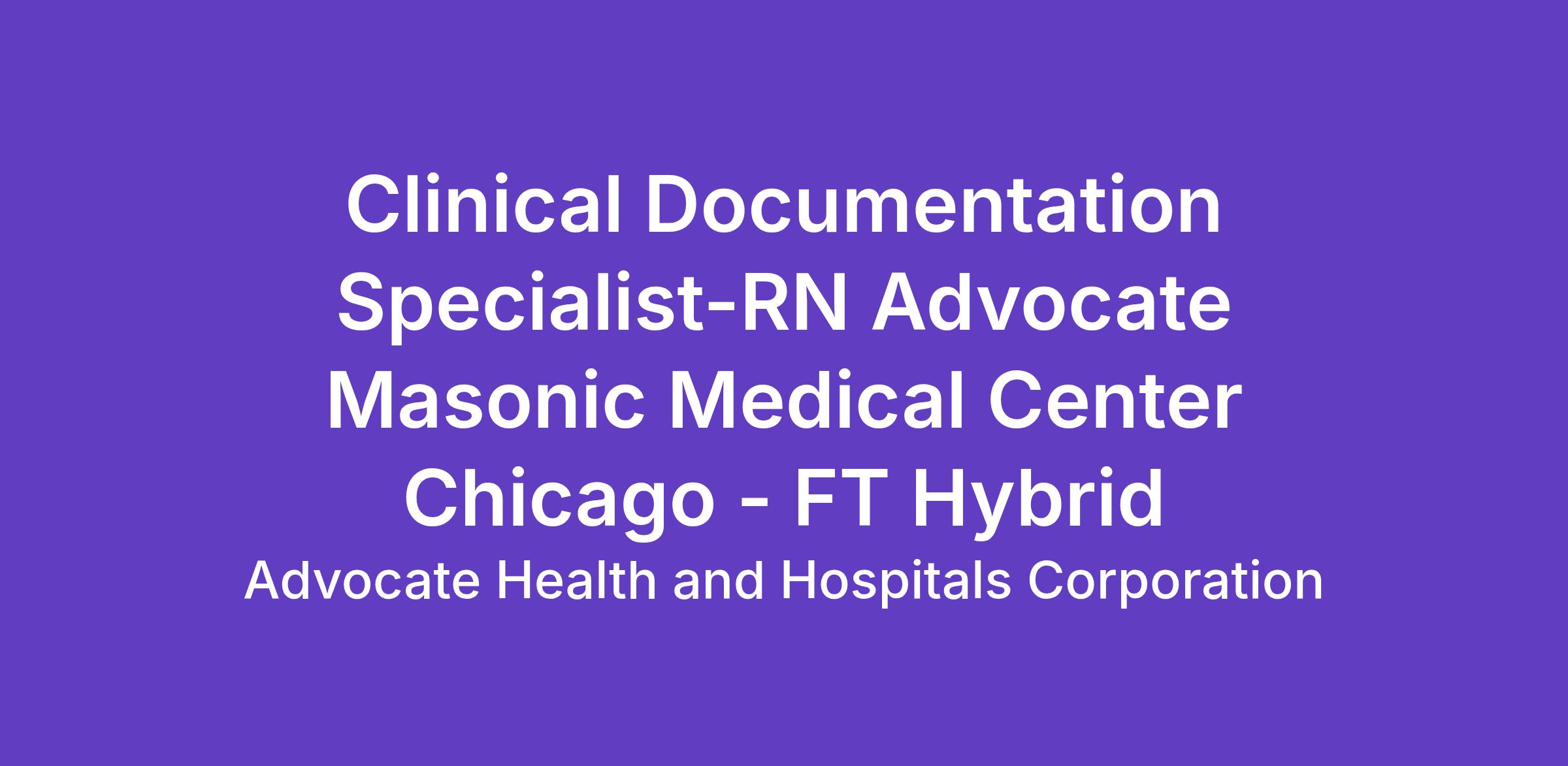 $38.20 - $57.30Position Requirements: Graduate from an accredited school of nursingBSN 5 years relevant clinical experience (For associates in process level 25013 5 years relevant pediatric clinical experience) Clinical documentation improvement experience preferred Ability to prioritize workExcellent communication skillsGood problem solving skillsCritical thinking skillsBasic Computer skillsEffective problem~solver with good interpersonal communication skills verbal and writtenEffective observation analytical and critical thinking skills Current nursing license in the State of Illinois.Certification in clinical documentation improvement preferred. Ability to work in changing environmentAbility to prioritize independently and respond to multiple simultaneous requestsAbility to work under stressful conditions and in difficult situationsMay be exposed to hazardous materials and life threatening diseasesThis position needs to recognize needs and behaviors of specific age groups of patients treated.Extensive knowledge and experience of ICD~10 coding classification system and DRGsnonePurpose: This role will facilitate the modifications of clinical documentation through extensive initial and concurrent interaction with physicians and other members of the healthcare team to support appropriate documentation of the clinical severity and risk of mortality is captured for the level of services rendered to select inpatients populations. This role will supports timely accurate and complete documentation of clinical information used for measuring and reporting physician and hospital outcomes and provides education to all members of the health care team on an ongoing basis.Accountabilities:Improves the overall quality and completeness of clinical documentation by performing chart reviews using clinical documentation guidelines based on accepted standards evidenced based practice and current regulatory requirements.Educates all internal customers on clinical documentation opportunities codiOur Commitment to You: