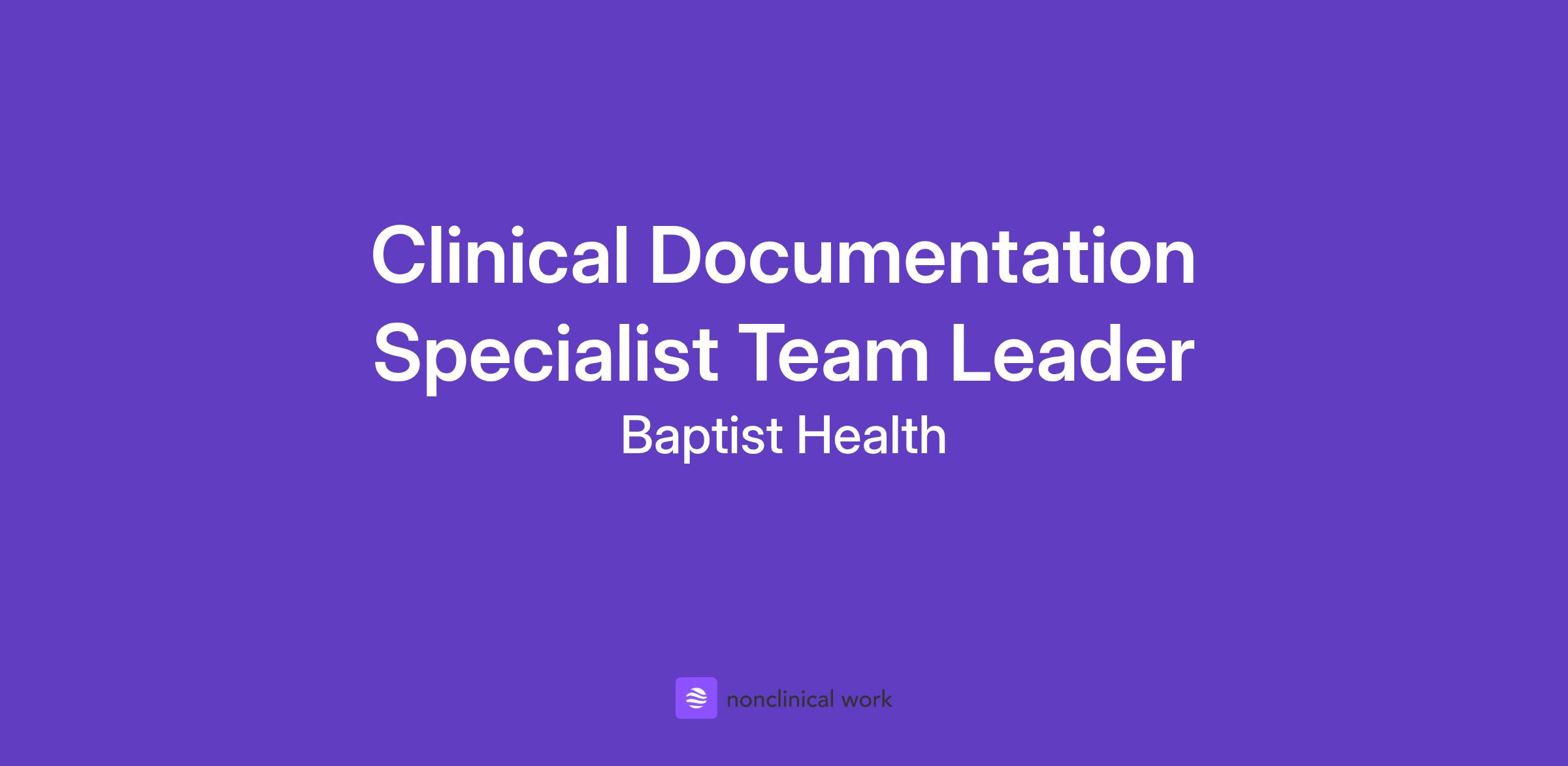 Clinical Documentation Specialist Team LeaderClinical Documentation Improvement Specialist, Team LeadJob Type: