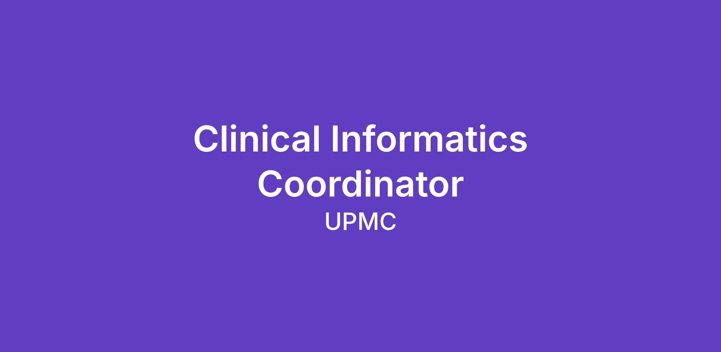 UPMC is hiring a Clinical Informatics Coordinator to join their Care Efficiency and innovation team. If you have Epic experience, IT, clinical /health care, and strong communication and computer skills. APPLY NOW!