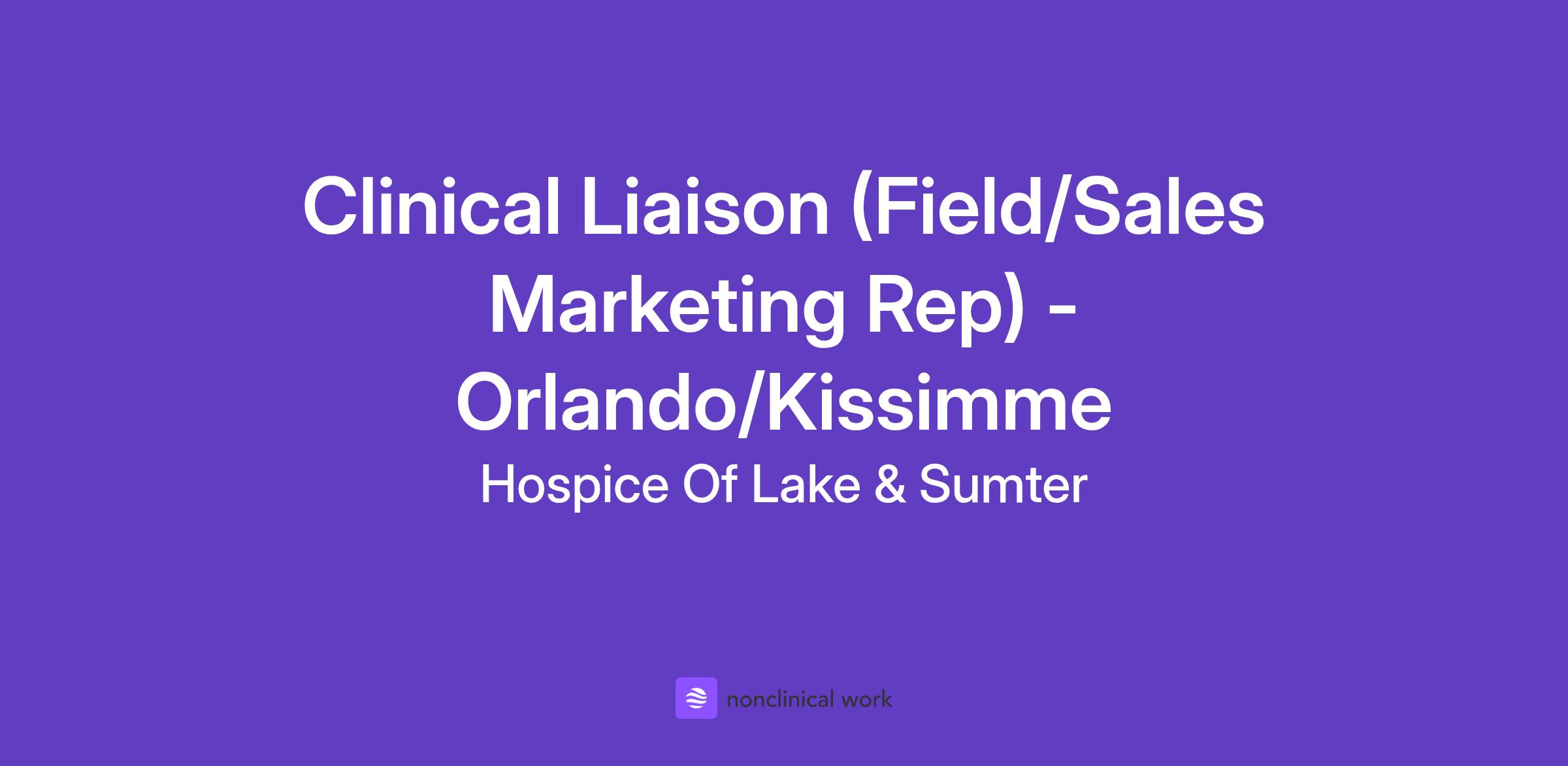 The Clinical Liaison (Field Marketing/Sales Rep) is responsible for all sales and marketing activities designated to increase referrals/admissions and enhance relationships with referral sources in Orange and Osceola counties. These activities may include but are not limited to: marketing, public relations, education, customer service, and assisting in patient referral functions to assure timely admissions. The ideal candidate will have hospice experience and/or a strong medical sales (pharmaceutical, DME) background with proven success with physicians. Must be comfortable presenting education to healthcare professionals. Must be comfortable making cold calls into new accounts. Strong follow-up skill set a must. Existing relationships established a plus!