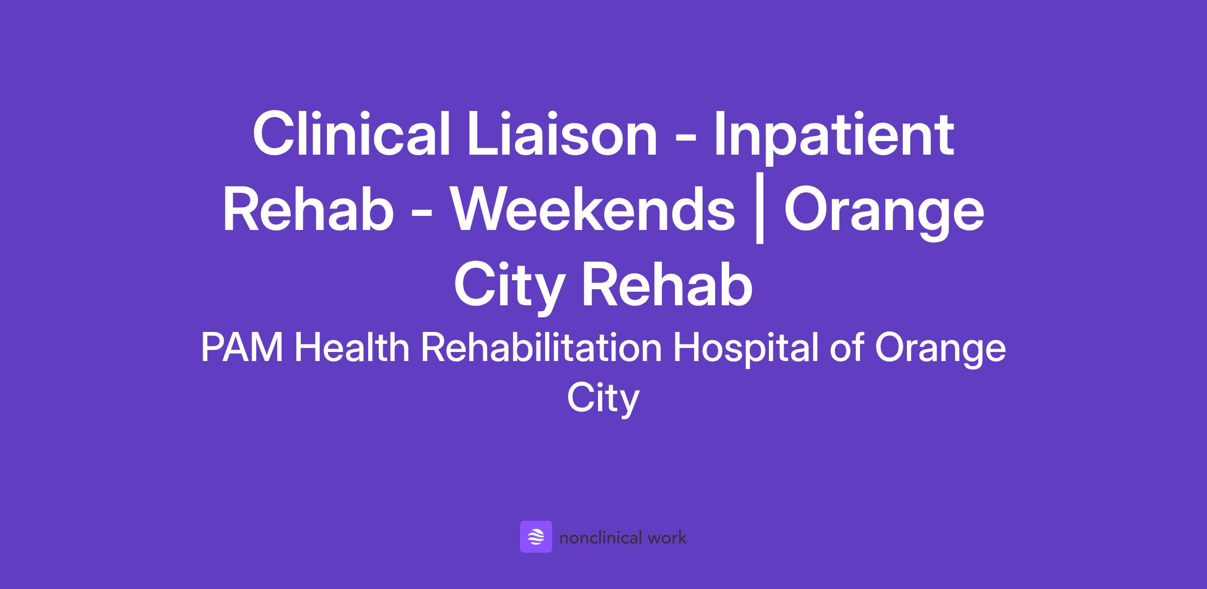 Clinical Liaison - Inpatient Rehab - Weekends | Orange City Rehab