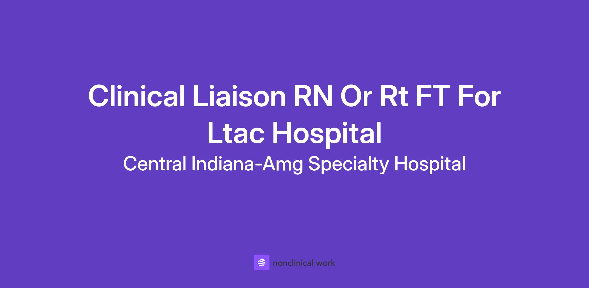 AMG Specialty Hospital - Muncie Campus seeks a Clinical Liaison (RN or RT) assigned to the Fort Wayne and Marion territory. This Clinical Liaison will work with other Clinical/Community Liaisons, Administrators, Admission Coordinators, and the Corporate Team to help consistently increase patient census in the hospital. The average census of the hospital provides a "group performance indicator for the CL team" and the Admit-Referral report provides a "specific performance indicator for the individual CL." There are two basic parts to the CL role: evaluate the patient and educate the medical community. This position includes driving daily to and from meetings, referral sources and potential referral sources. Clinical experience is required as a Registered Nurse, RN, or Respiratory Therapist, RT.