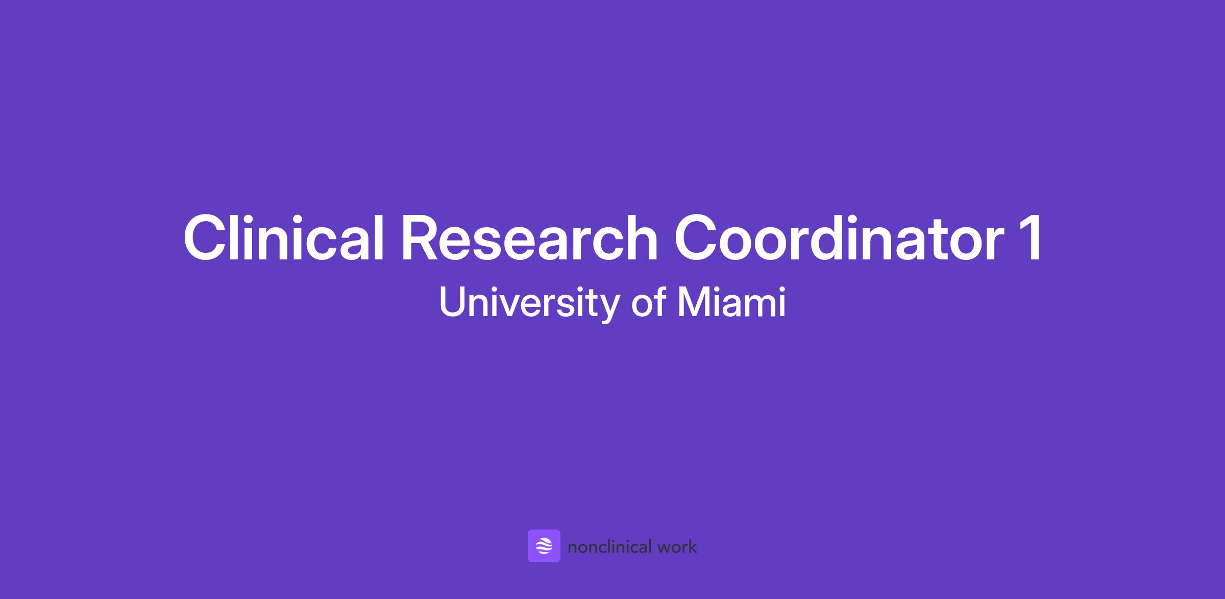 Current Employees: If you are a current Staff, Faculty or Temporary employee at the University of Miami, please click here to log in to Workday to use the internal application process. To learn how to apply for a faculty or staff position using the Career worklet, please review this tip sheet. The University of Miami/UHealth Department of SCCC has an exciting opportunity for a Full Time Clinical Research Coordinator 1 to work at the UHealth campus in Miami, Fl. CORE JOB SUMMARY The Clinical Research Coordinator 1 serves as an entry level clinical research professional that has a basic foundation in clinical research through assigned responsibilities in data management or implementing clinical research protocols. CORE JOB FUNCTIONS 1. Performs chart review/pre-screening activities for study participant eligibility and coordination of simple clinical research protocols. Maintains enrollment procedures according to the protocol. 2. Coordinates routine activities of clinical studies including data collection and maintenance, planning study timelines, schedules appointments and study visits, meeting scheduling, and project evaluation. 3. Performs moderate to complex research tests/ experiments and adapts procedures for quality improvement under supervision. 4. Understands and follows technical instructions for operating clinical research equipment, problem solves when operational failures occur. 5. Assists in observing and informing the PI/supervisor of adverse events, including those reported by study participants. 6. Addresses adverse events per protocol, advocating for study participants and quality standards throughout the lifespan of the study. 7. Identifies, reports, and helps problem solve protocol deviations and unanticipated occurrences. 8. Follows the appropriate fundamental requirements of all international, national, and local regulatory bodies. 9. Knows the contents and maintenance of study-specific clinical research regulatory binders. 10. Maintains requisite skills and mandatory training in safety, equality, responsible conduct of research, continuing education, and research competencies. 11. Adheres to University and unit-level policies and procedures and safeguards University assets. This list of duties and responsibilities is not intended to be all-inclusive and may be expanded to include other duties or responsibilities as necessary. CORE QUALIFICATIONS Education: Bachelorβs degree in relevant field required Experience: Minimum 1 year of relevant experience Knowledge, Skills and Attitudes: Skill in completing assignments accurately and with attention to detail. Ability to analyze, organize and prioritize work under pressure while meeting deadlines. Ability to process and handle confidential information with discretion. Ability to work evenings, nights, and weekends as necessary. Commitment to the Universityβs core values. Ability to work independently and/or in a collaborative environment. DEPARTMENT SPECIFICS: Assists the Monitors, Clinical research Coordinators and PIs in the organization and preparation of Site Initiation Visits (SIV). Attend site disease group tumor board meetings and site disease group collaborative meetings usually composed of PIs, sub-PIs, CRCs, IT, and Regulatory Staff. Assist the Clinical Research Coordinators ensuring that all protocol revisions, informed consents, continuing reviews, serious adverse events are submitted to the appropriate IRB of record in a timely manner. Assists PI in obtaining informed consent and documents the informed consent process as required. Compiles patient data and presents those to the PI for their determination of patient eligibility for protocol enrollment. Enters required protocol enrollment report to CRIS Office and JHS CTO according to established procedures. Complete sand submits to the CRIS Office and/or JHS CTO Office protocol specific forms as required per UM and/or JHS policies. Assist in the completion of protocol specific documents. Obtain relevant medical information from patient clinic charts/medical records. Maintain logs/progress reports to track both currently enrolled as well as follow-up participants. Provide protocol specific study documentation required in the management of study patient as per the protocol, federal regulations, and sponsor requirements and as required per UM policy. Under the supervision of the Principal Investigator. Determine data to be collected and develop forms for collecting/summarizing data. Enter data onto case report forms and/or into computer database as appropriate. Complete corrections/queries required at audits/monitor visits. Ensure data integrity and consistency in computer database and written records. Assist the Clinical Study Coordinator for the entry of and maintenance of the patient calendar. Ensure protocol specific data is entered into Velos. Enters data onto case report forms and/or into computer database. Completes corrections/queries required at audits/monitor visits in a timely manner. Ensures data integrity and consistency in computer database and written records by reviewing entered data for accuracy. Query data inconsistencies and revise case report forms in compliance with standard operating procedures, Institutional, Federal and Regulatory guidelines. Actively participates in monitoring visits/site audits, etc. Seek review and approval of the Principal Investigator. Assist the Clinical Study Coordinator to maintain screening, enrollment, adverse event, deviation, tumor measurement, concomitant medication, delegation and other sponsor and/or protocol specific logs. Ensures that randomization and registration of patients are performed in compliance with CRS and UM policies, the protocol, ICH-GCP, and federal regulations. Provides support with study related procedures as required, i.e., EKG, laboratory and tumor assessment studies. Ensures work environment is organized and functions efficiently. Participates in a collaborative, empowered work environ