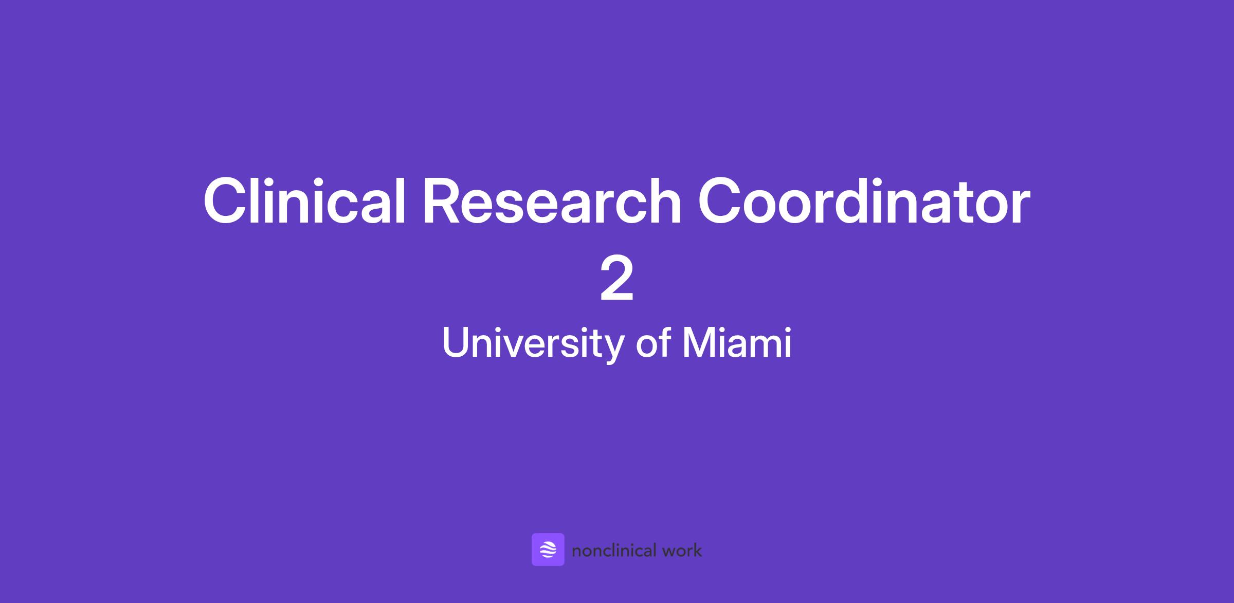 Current Employees: If you are a current Staff, Faculty or Temporary employee at the University of Miami, please click here to log in to Workday to use the internal application process. To learn how to apply for a faculty or staff position using the Career worklet, please review this tip sheet. The University of Miami/UHealth Department of SCCC has an exciting opportunity for a Full Time Clinical Research Coordinator 2 to work at the UHealth campus in Miami, Fl. CORE JOB SUMMARY The Clinical Research Coordinator 2 serves as a mid-level clinical research professional that assists in the planning, coordinating, implementing, monitoring, and evaluating of specific clinical research studies. This role assists in the day-to-day operations of clinical research protocol implementation and carries out study coordination duties from protocol initiation to study close-out according to regulatory/sponsor guidelines. The incumbent works closely with study team members and other staff/faculty/study sites to ensure study participant safety and adherence to approved protocols, help with study-related administrative tasks, facilitate across-the-board flow of information, and coordinate study activities and personnel. CORE JOB FUNCTIONS 1. Assists in participant recruitment and retention activities and assists in screening potential study participants for eligibility. 2. Performs study procedures, routine tests, data collection/recording, and daily operations of moderate risk clinical research protocols. 3. Collects, processes, packs, and ships specimens according to protocol, applicable standards and regulations. 4. Maintains study binders and filings according to protocol requirements, UM and department policy. 5. Distributes study drug materials according to practice standards and clinical credentials as delegated by the Principal Investigator. 6. Monitors, documents, reports, and follows-up on study unanticipated/adverse events and protocol deviations. 7. Assists in implementing protocol amendments under direct supervision of the Principal Investigator. 8. Assists with study orientation and protocol related in-services to research team and clinical staff. 9. Monitors protocol implementation and study progress; keeps investigators fully apprised of study progress; submits progress reports according to established schedule. 10. Learns the research team and assists with communications/interactions with sponsor, data coordinating centers, compliance monitors, collaborators, investigators’ academic administrative personnel, and departments. 11. Assists in administrative tasks of study personnel including orientation, documenting core competencies, certification mandates, safety/responsible conduct of research education, and performance reviews. 12. Adheres to cultural competency guidelines; implements strategies to meet study participants’ needs for language translation, health literacy, etc. 13. Follows the appropriate fundamental requirements of all international, national, and local regulatory bodies. 14. Maintains requisite skills and mandatory training in safety, equality, responsible conduct of research, continuing education, and research competencies. 15. Adheres to University and unit-level policies and procedures and safeguards University assets. This list of duties and responsibilities is not intended to be all-inclusive and may be expanded to include other duties or responsibilities as necessary. CORE QUALIFICATIONS Education: Bachelor’s degree in relevant field required Experience: Minimum 2 years of relevant experience required Knowledge, Skills and Abilities: Learning Agility: Ability to learn new procedures, technologies, and protocols, and adapt to changing priorities and work demands. Teamwork: Ability to work collaboratively with others and contribute to a team environment. Technical Proficiency: Skilled in using office software, technology, and relevant computer applications. Communication: Strong and clear written and verbal communication skills for interacting with colleagues and stakeholders. #LI-YC1 The University of Miami offers competitive salaries and a comprehensive benefits package including medical, dental, tuition remission and more. UHealth-University of Miami Health System, South Florida's only university-based health system, provides leading-edge patient care powered by the ground breaking research and medical education at the Miller School of Medicine. As an academic medical center, we are proud to serve South Florida, Latin America and the Caribbean. Our physicians represent more than 100 specialties and sub-specialties, and have more than one million patient encounters each year. Our tradition of excellence has earned worldwide recognition for outstanding teaching, research and patient care. We're the challenge you've been looking for. The University of Miami is an Equal Opportunity Employer - Females/Minorities/Protected Veterans/Individuals with Disabilities are encouraged to apply. Applicants and employees are protected from discrimination based on certain categories protected by Federal law. Click here for additional information. Job Status: Full time Employee Type: Staff Pay Grade: A9 The mission of the University of Miami is to transform lives through education, research, innovation, and service. A vibrant and diverse academic and healthcare community, the University of Miami and the University of Miami Health System ("UHealth") have rapidly progressed to become one of the nation’s top research universities and academic medical centers in the nation. The University comprises 12 schools and colleges serving undergraduate and graduate students in more than 350 majors and programs. Visit welcome.miami.edu/about-um to learn more about our points of pride. The University ranks No. 55 on U.S. News & World Report’s 2022 Best Colleges list and ranked No. 49 in the 2022 Wall Street Journal/Times Higher Education College Rankings. Bascom Palmer Eye Institute is ran