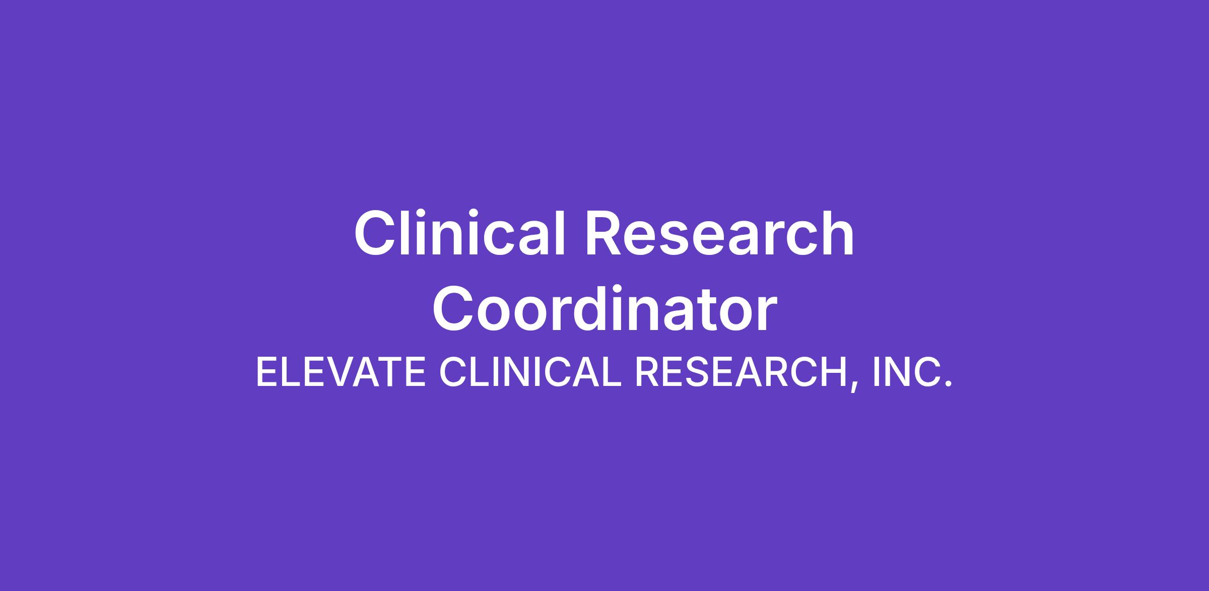 * At least 2 years of experience coordinating clinical research studies or trials.