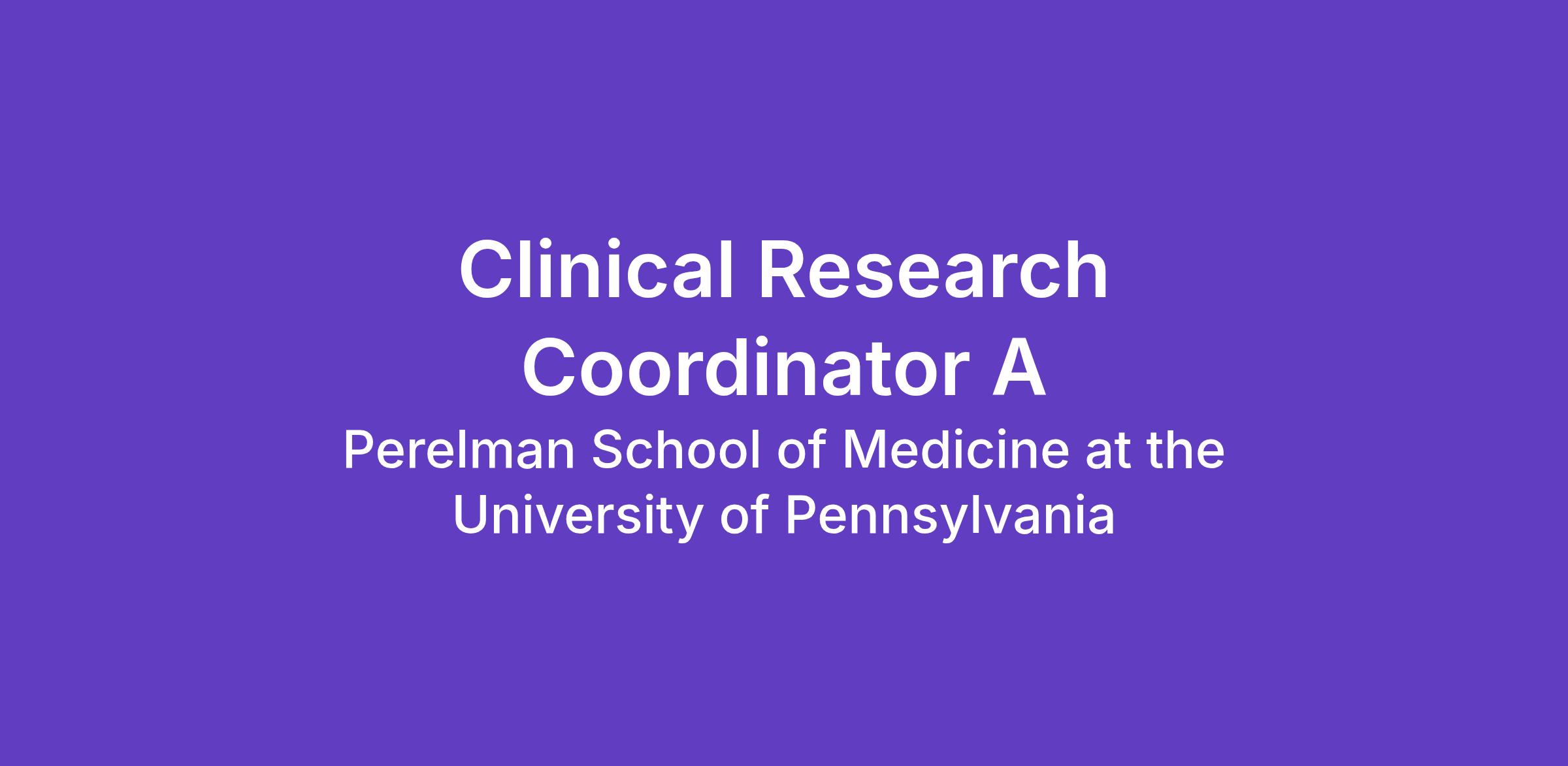 Clinical Research Coordinator A