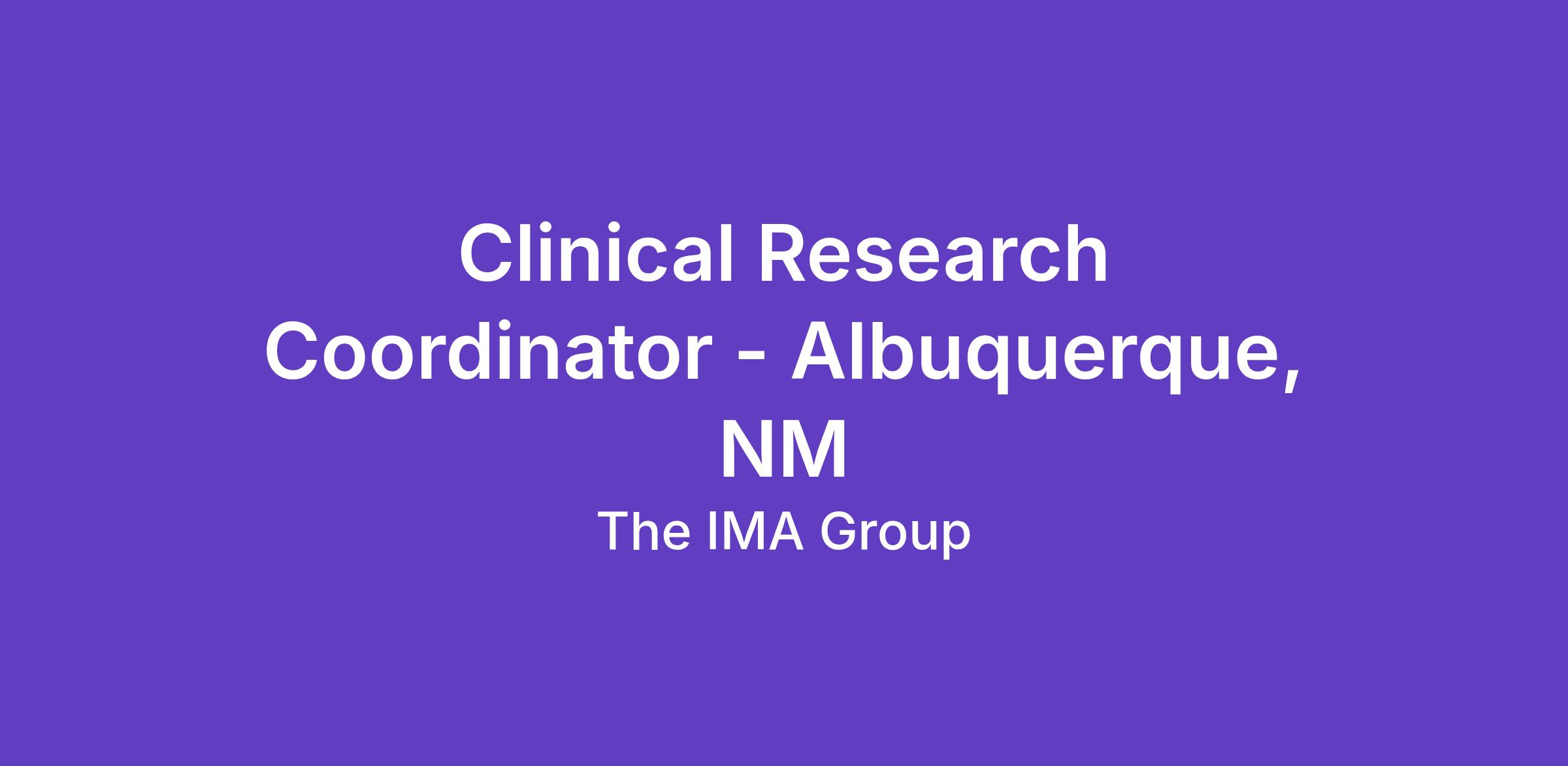 Join IMA Clinical Research and be part of studies that make a real impact on patient care. Weβre seeking an experienced Clinical Research Coordinator to support clinical trials from start-up through close-out in a fast-paced, collaborative environment. The hours for this position are 9am-5:30pm from Monday-Friday.