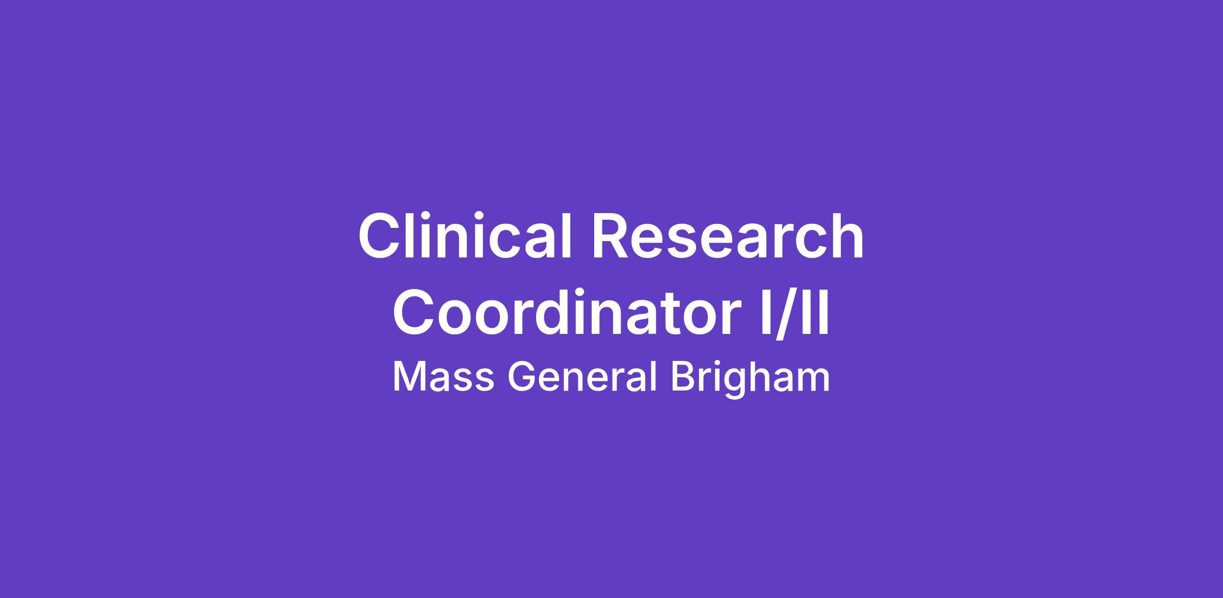 A Clinical Research Coordinator II performs the duties of a Clinical Research Coordinator I (above) and may also: