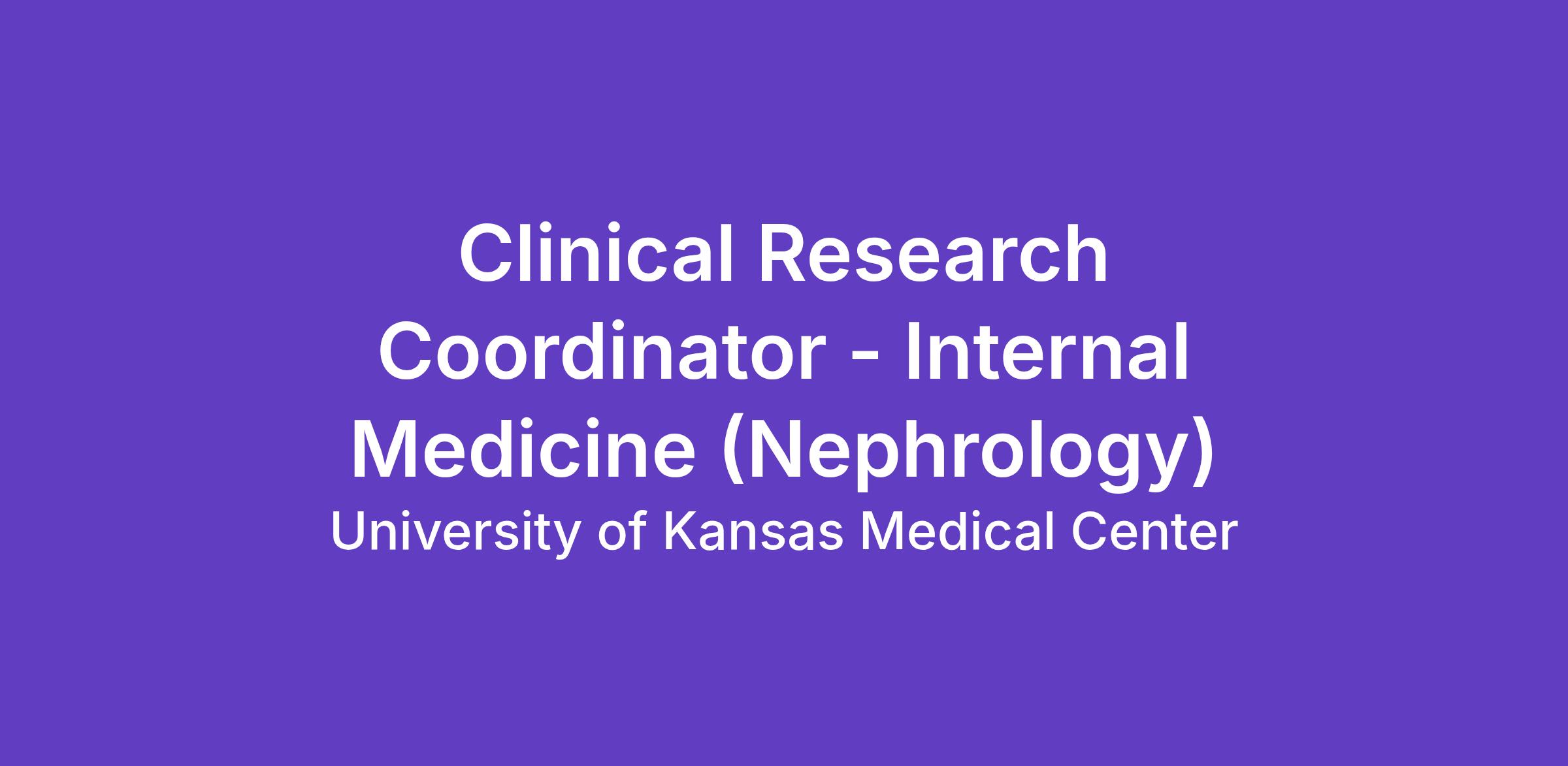 Medicine - Nephrology and Hypertension Position Title: Clinical Research Coordinator - Internal Medicine (Nephrology) Job Family Group: Professional Staff Job Description Summary: The Clinical Research Coordinator in the Department of Internal Medicine, Division of Nephrology works collaboratively with multidisciplinary teams, research, and hospital staff to recruit, screen, educate, and assist in the kidney transplant clinical research studies. This position oversees assigned studies, managing complex activities related to the collection, documentation, and analysis of clinical research data. Additionally, the Clinical Research Coordinator monitors participant progress, documents and reports adverse events, and participates in periodic quality assurance audits of study protocols. Job Description: Job Duties Outlined