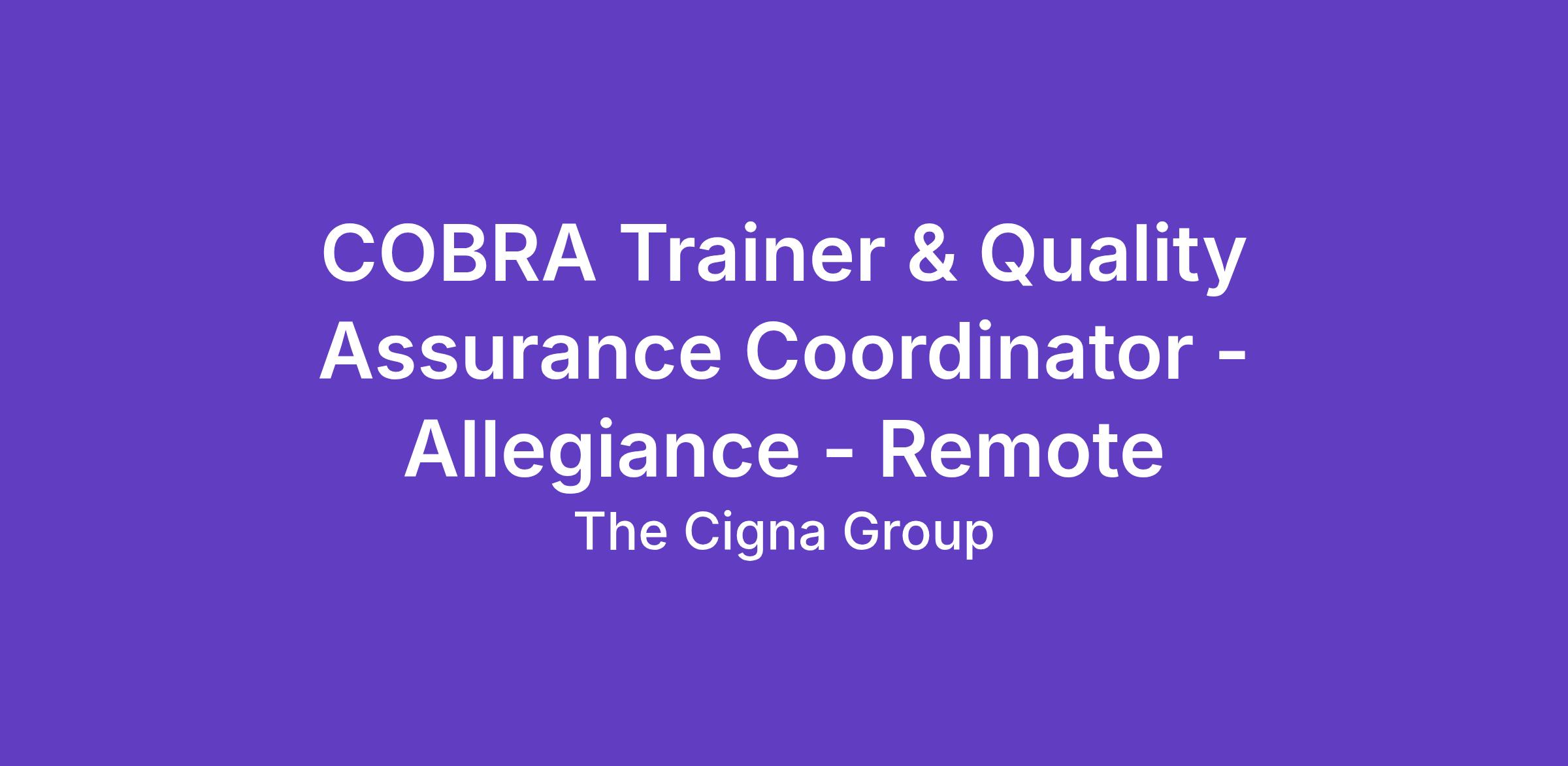 COBRA Trainer & Quality Assurance Coordinator - Allegiance - Remote