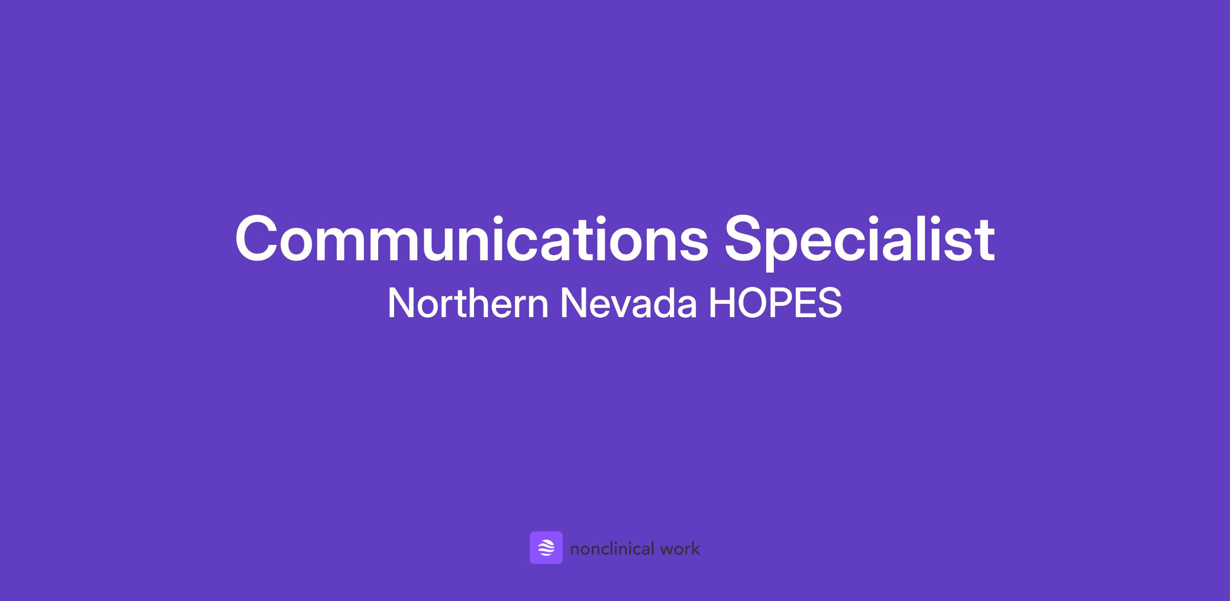 The Communications Specialist plays a key role in content development crafting messaging that speaks to patients, board members, staff, donors, key stakeholders, and the wider community in a way that keeps everyone informed and inspired. This includes managing public relations efforts, social media strategy, optimizing web content and website management, email marketing campaigns, and newsletters to drive engagement and awareness of Northern Nevada HOPES. The role also involves grassroots outreach efforts, such as community tours, community outreach, collateral distribution, and presentations. The Communications Specialist plays a key role in garnering stories to support marketing and donor initiatives.