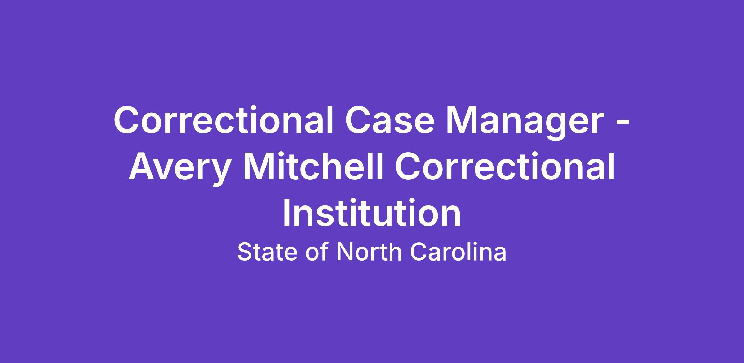 This position is located at Avery Mitchell Correctional Institution in Avery County, NC. Avery Mitchell Correctional Institution is a medium custody male facility.