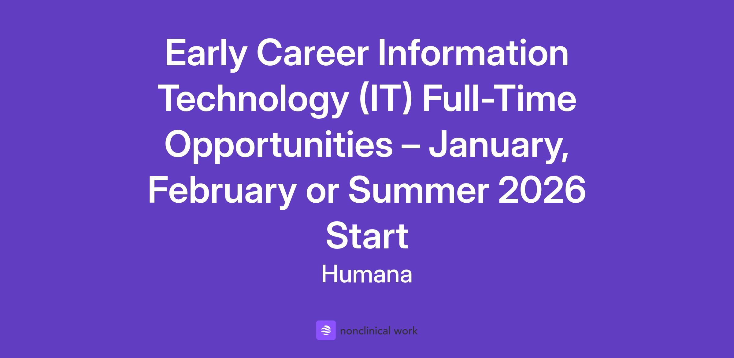 Become a part of our caring community and help us put health first Location: Louisville, KY; Arlington, VA; Denver, CO; Fort Lauderdale, FL; and Frisco, TX Description Humana is a leading healthcare organization committed to helping millions of people achieve their best health. Our Information Technology (IT) teams play a vital role in delivering innovative digital solutions that improve patient outcomes, streamline operations, and enhance consumer experience. Humana is seeking early career IT professionals for full-time roles starting in January, February, or Summer 2026. These opportunities are designed for undergraduate and master’s students graduating in Summer 2025, December 2025 or Spring/Summer 2026 who are passionate about technology and eager to make an impact in the healthcare industry. Roles span across Artificial Intelligence, Machine Learning, Software Engineering, Data Engineering, Data Science, Agile Project Management, and related disciplines. Qualified applicants will be considered for a variety of positions across Humana’s IT organization, and your areas of interest will be requested and considered during the hiring process. Potential Team Placements: You may be placed in one of the several dynamic areas within Humana’s IT organization, including: Digital & Growth: Digital & Growth focuses on leveraging technology to drive member engagement, business expansion, and operational efficiency. The team develops and refines digital tools, mobile applications, and self-service portals that enhance the customer journey. Projects may include building new digital experiences, implement marketing automation, or use analytics to inform business strategy. Enterprise AI: The Enterprise Augmented Intelligence (AI) team is responsible for innovating and building reusable, human-centered AI capabilities, tools and services to support and mature Humana’s data science community and its data science projects. This includes focusing on advancing the future of AI with innovations such as Natural Language Processing (NLP) and Conversational AI, driving the AI Center of Excellence (COE) and supporting high-priority business use cases, all with the purpose of helping individuals achieve their best health, enabling simpler care and membership growth for Humana. Interns may work on projects involving model development, data pipeline optimization, and AI-driven insights for clinical and business challenges. Insurance: The Insurance IT segment enables Humana’s core insurance operations by developing and maintaining systems for claims processing, underwriting, policy administration, and member enrollment. Projects often focus on automating workflows, modernizing legacy platforms, AI chatbots and IVR, and enhancing data integrity to support efficient and accurate insurance services. Required Qualifications Must be available to work full-time (40 hours/week) starting January, February, or Summer 2026. Must not require sponsorship to work in the United States now or in the future. Must be a current full-time undergraduate or graduate student with an expected graduation date between Summer 2025 and Summer 2026. Must be intellectually curious, flexible, as demonstrated through previous jobs, internships, and/or projects. Must possess strong interpersonal, written, and oral communication skills. Preferred Qualifications Be actively involved in on-campus and/or community activities. Have a strong academic history, with a minimum of 3.5 cumulative GPA. Possess an interest in working in the healthcare industry. Pursuing a bachelor’s or master’s degree in computer science, Computer Engineering, Information Technology, Computer Information Systems, Data Science, Cyber Security, or related quantitative discipline. Technical skills may include Java, C#, JavaScript/Angular, SQL, Oracle, MongoDB, PowerBI, cloud platforms (Azure, AWS, Google Cloud), SaaS (Salesforce), agile methodologies (scaled agile, scrum), and AI/ML frameworks. You must be authorized to work in the US without Humana sponsorship as Humana does not provide work visa sponsorship for this role. Use your skills to make an impact Humana values personal identity protection. Please be aware that applicants may be asked to provide their Social Security Number, if it is not already on file. When required, an email will be sent from Humana@myworkday.com with instructions on how to add the information into your official application on Humana’s secure website. As part of our hiring process for this opportunity, we will be using an interviewing technology called HireVue to enhance our hiring and decision-making ability. HireVue allows us to quickly connect and gain valuable information from you pertaining to your relevant skills and experience at a time that is best for your schedule. Humana offers a variety of benefits to promote the best health and well-being of our employees and their families. We design competitive and flexible packages to give our employees a sense of financial security—both today and in the future, including: Health benefits effective day 1 Paid time off, holidays, volunteer time and jury duty pay Recognition pay 401(k) retirement savings plan with employer match Tuition assistance Scholarships for eligible dependents Parental and caregiver leave Employee charity matching program Network Resource Groups (NRGs) Career development opportunities Scheduled Weekly Hours 40 Pay Range The compensation range below reflects a good faith estimate of starting base pay for full time (40 hours per week) employment at the time of posting. The pay range may be higher or lower based on geographic location and individual pay will vary based on demonstrated job related skills, knowledge, experience, education, certifications, etc. $80,900 - $110,300 per year This job is eligible for a bonus incentive plan. This incentive opportunity is based upon company and/or individual performance. Description of Benefits Humana, Inc. and its affili