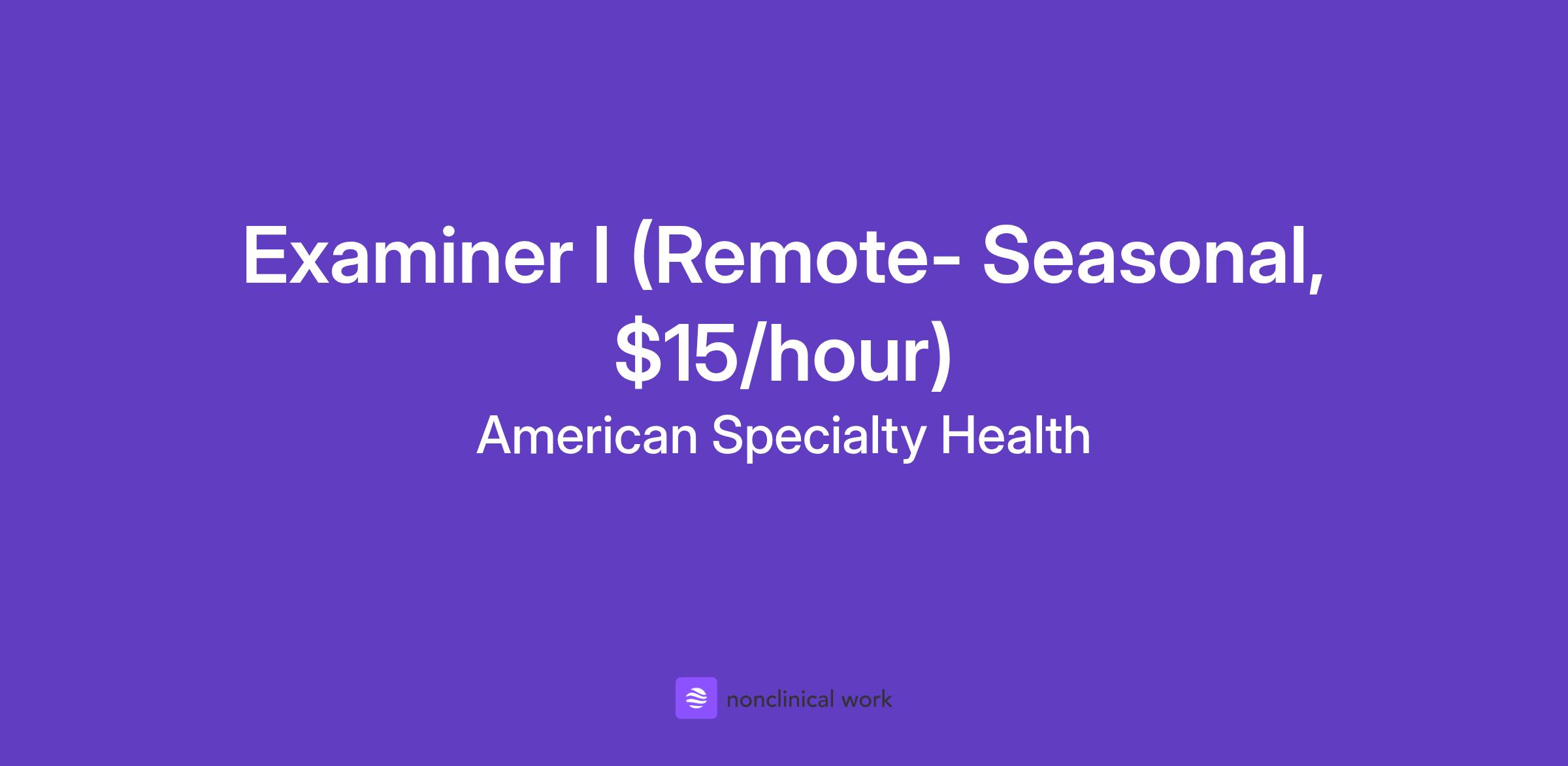 American Specialty Health Incorporated (ASH) is seeking an Examiner to join our Medical Necessity/Benefits Administration department.