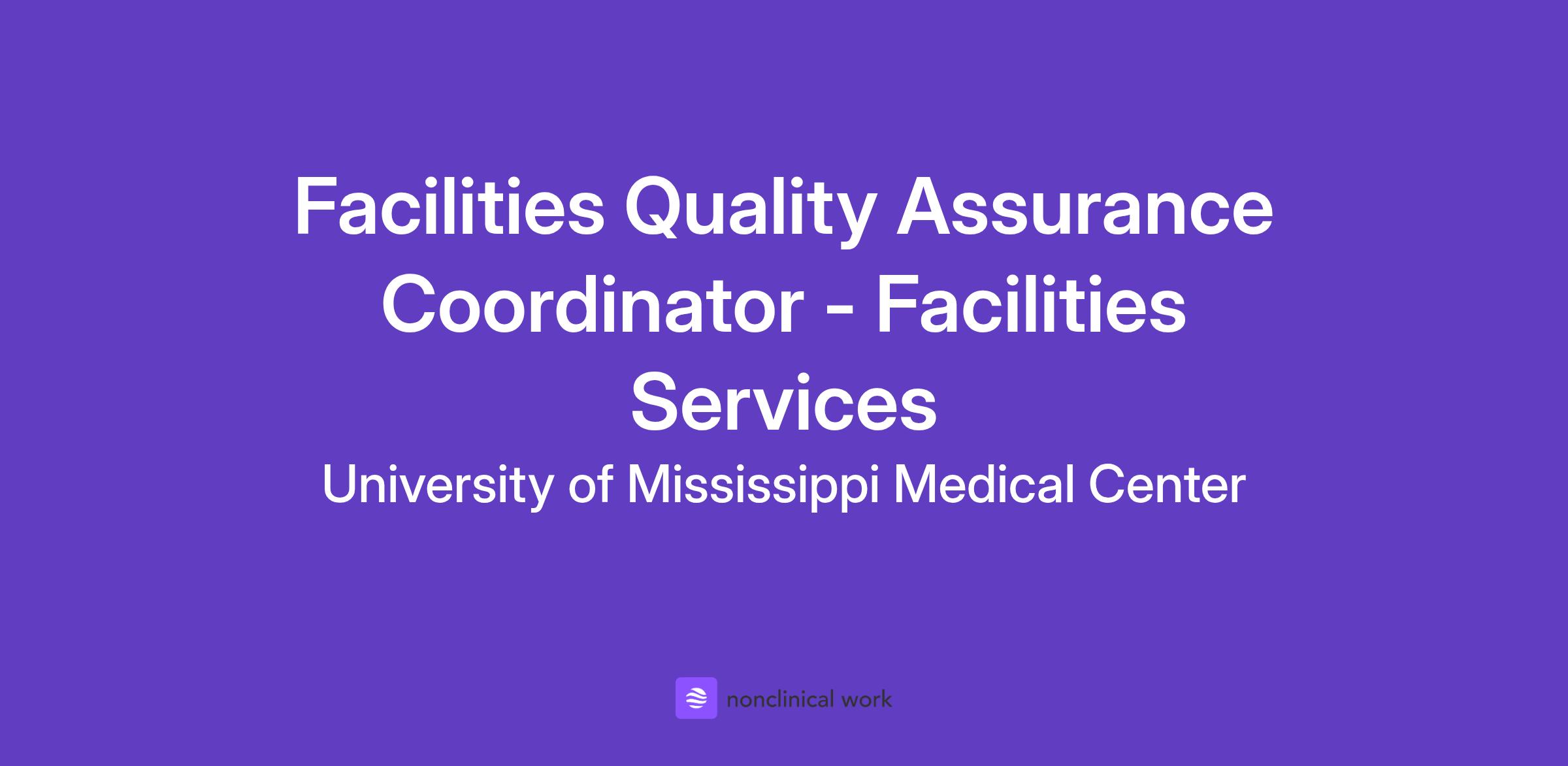 Job Title: Facilities Quality Assurance Coordinator - Facilities Services