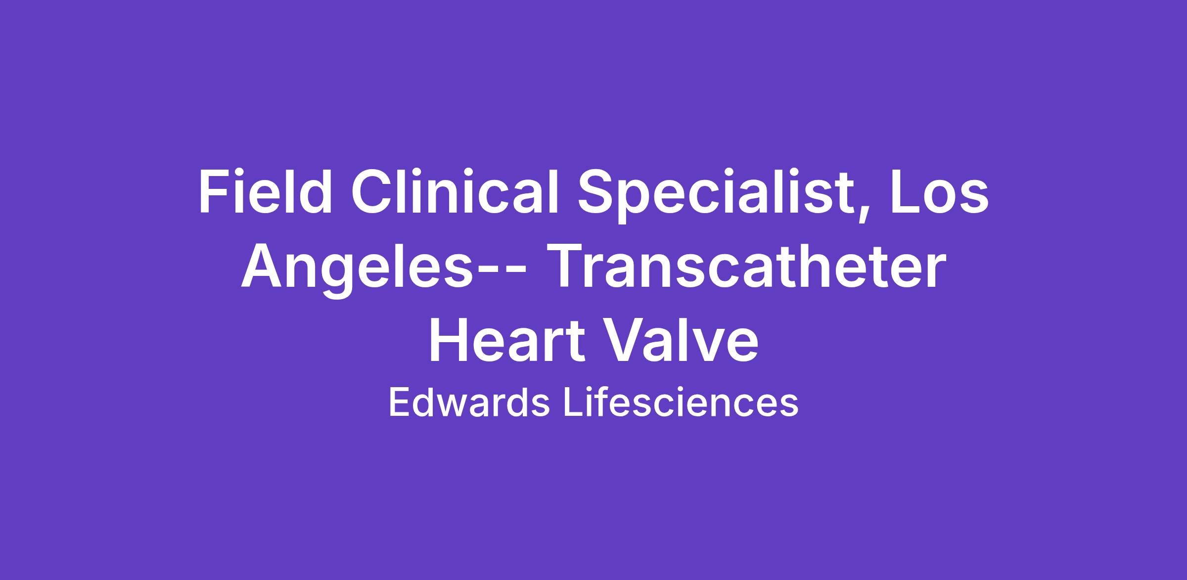 Make a meaningful difference to patients around the world. As a part of the Field Clinical Specialist team, you will be a critical part of delivering our patient focused innovations, partnering with clinical professionals, and training them on using our groundbreaking products. Your knowledge of working within the hospital ecosystem, combined with our in-depth training program, will help develop you into an Edwards subject matter expert, so you can play your own part in transforming patient lives.