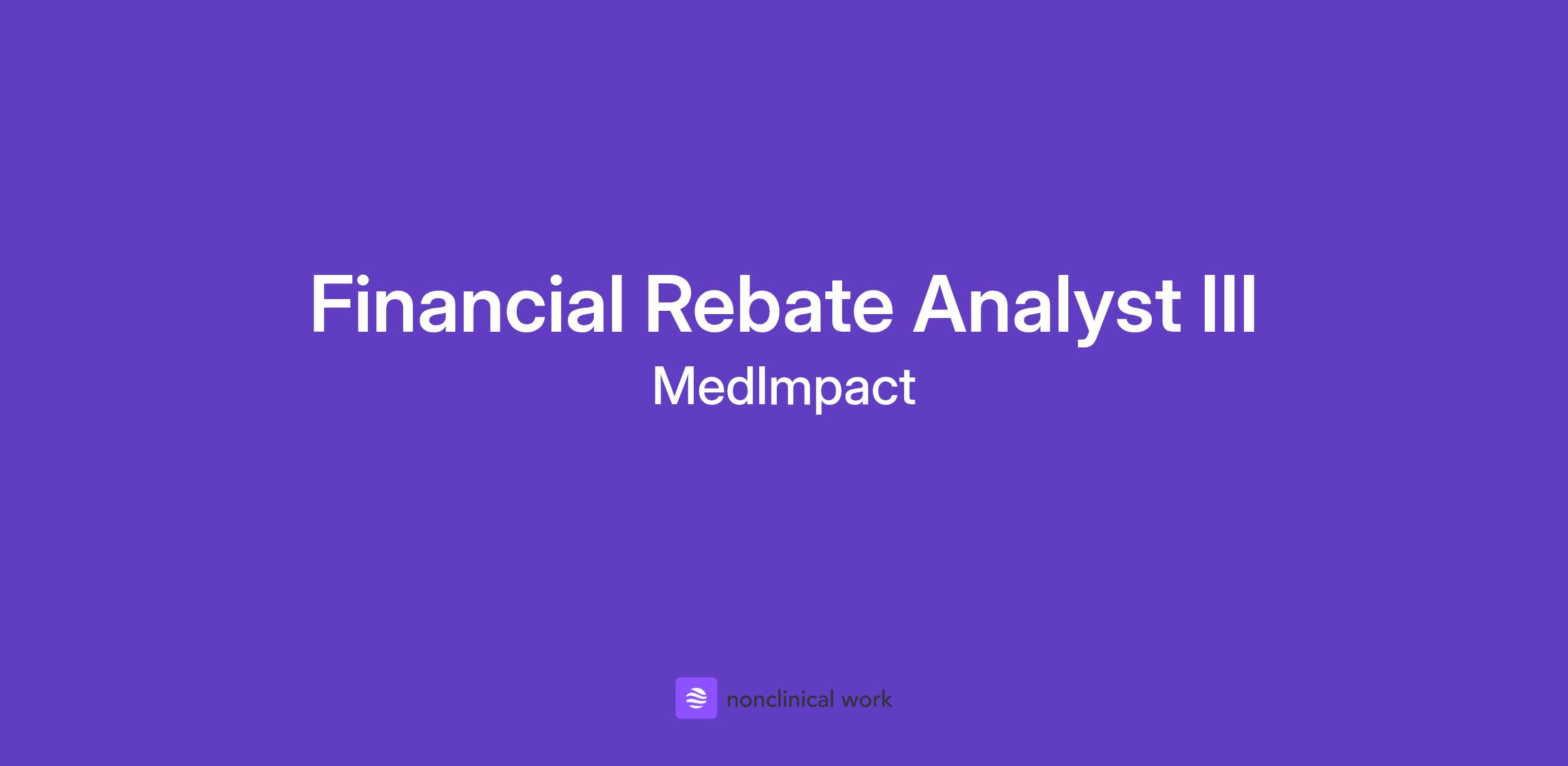 The Rebate Analyst III is responsible for accurately calculating and reporting on client rebate payments. This position maintains a high level of accuracy in analysis while meeting reporting and all other deadlines each month. The position will interact with internal and external stakeholders to support our customers.