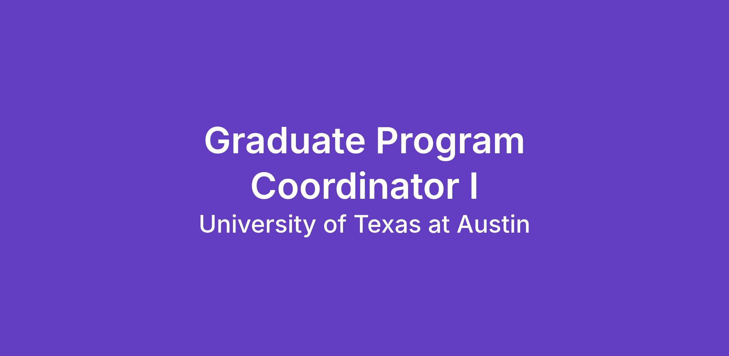 Graduate Program Coordinator I ----